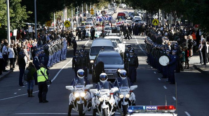 ‘When we gather at a funeral to farewell a colleague, a friend, a loved one, it is understandable, perhaps inevitable, that the mood is sombre,’’ Mr Scipione said.