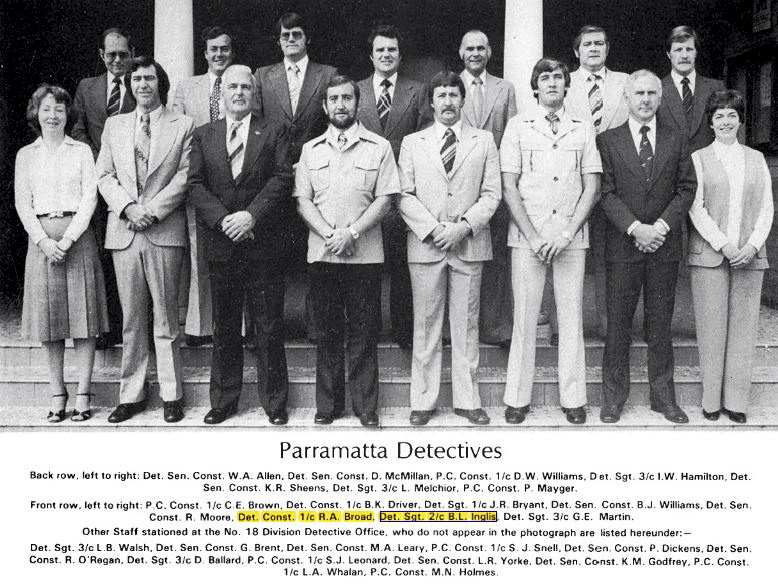 Stations: ?, Parramatta Detectives ( 18 Division ) ( 1960s – 1980s ), Campbelltown ( 35 Division ), Police Internal Affairs Branch ( I.A. – Inspector – Investigative Section – 1986 ), Regional Crimes Squad – South ( Det. Insp. in Charge – 1986 ), Regional Crimes Squad – North West,