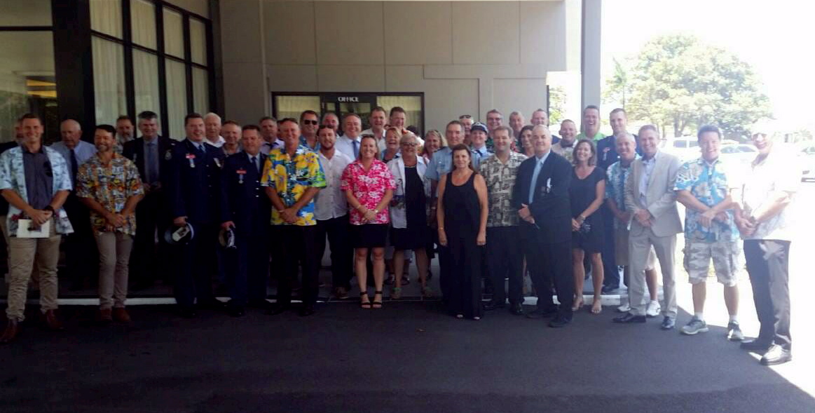 Photo of Bruce receiving his NSW Police Medal at Ballina RSL Club 2 years ago from Superintendent Greg Martin.