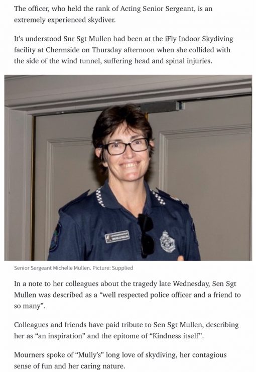 Cause: Injuries sustained in an “Off Duty” sporting venture in a wind tunnel – head and spinal injuries