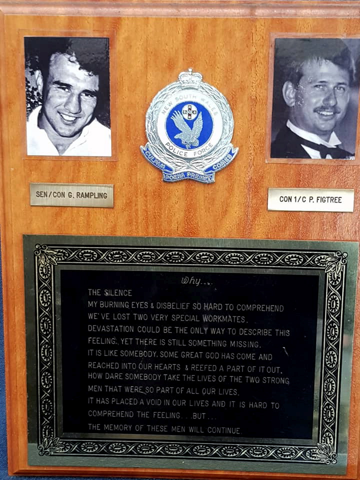 Attended this morning quite a moving 30 year memorial service for Glenn Rampling and Peter Figtree killed in a car chase near Ballina. May they rest in peace.