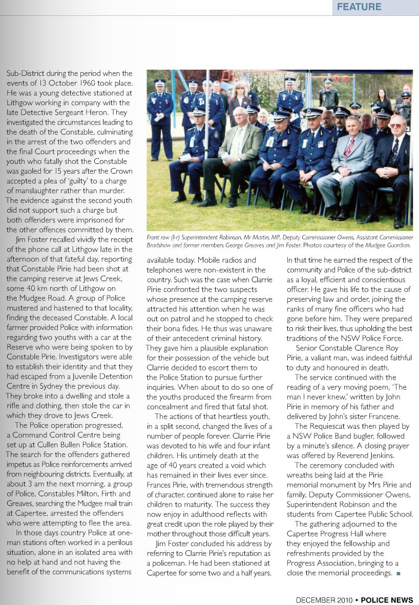 Clarence Pirie - NSWPF - Murdered 1960 - 50 years on - page 22 - Policenews - Dec 2010