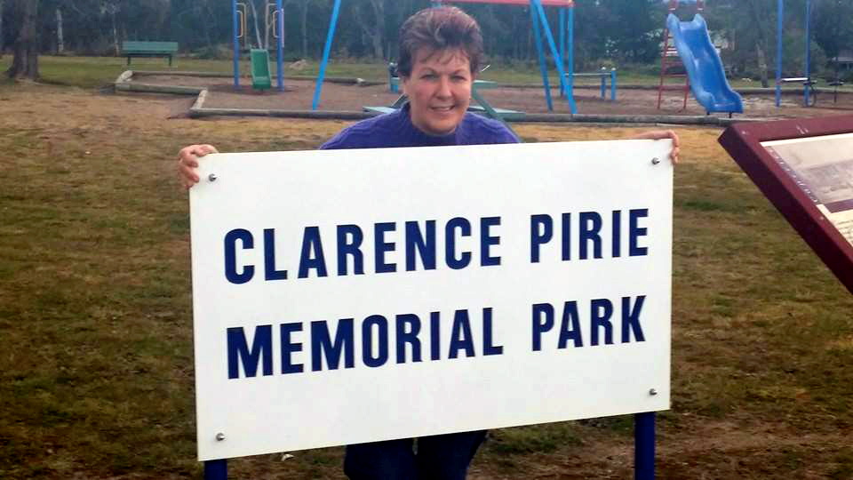 Clarence Roy PIRIE’s Daughter, Maryanne – July 2014 in the park dedicated to her father killed 54 years earlier.