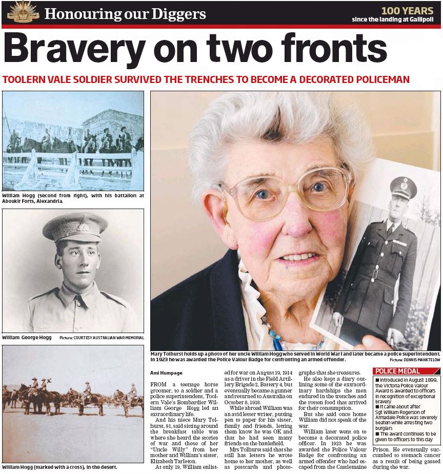 As a returned soldier he was offered a career in the NSW Police Force, and was appointed as an Ordinary Constable on the 1 April 1906, (information obtained from the NSW Police Gazette dated 11 July 1906).