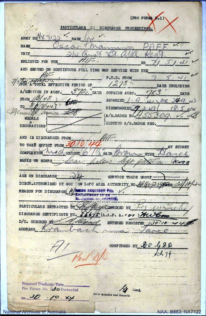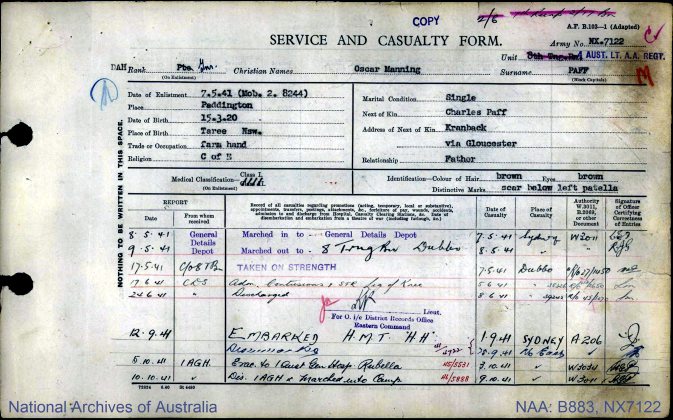 War Service In Au: Yes