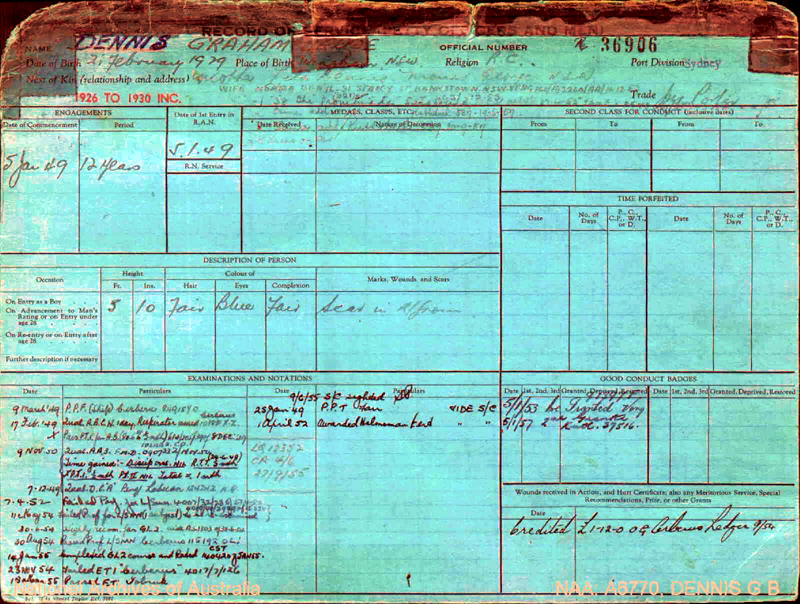 Service: From ? ? pre June 1940? to 6 March 1977 = 36? years Service