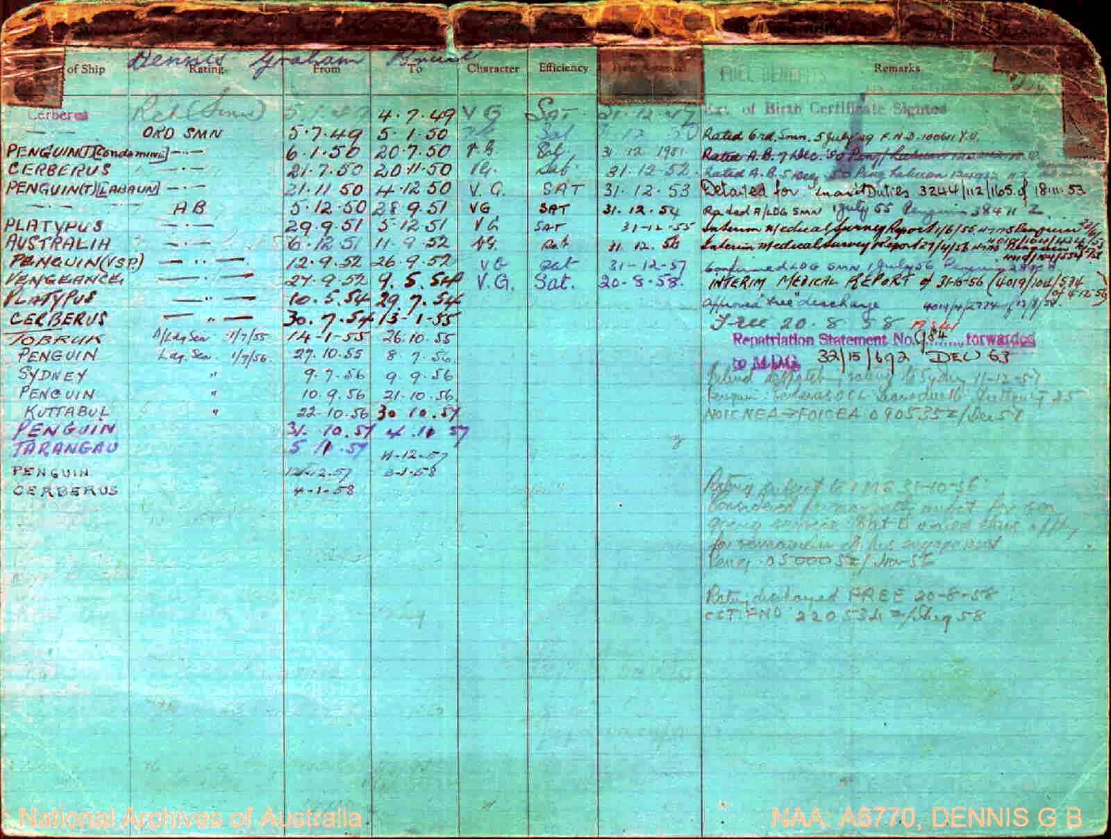 Returned to Australia: N/A