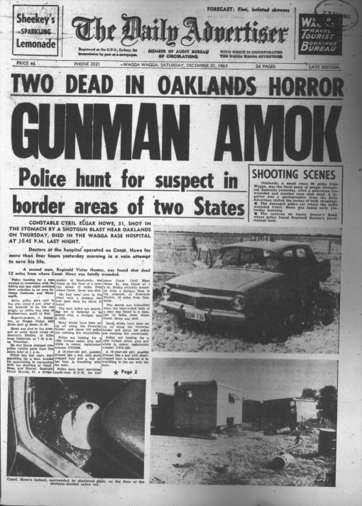 The other victim was 30 year-old Oaklands policeman Cyril Howe, who died in Wagga Base Hospital yesterday.