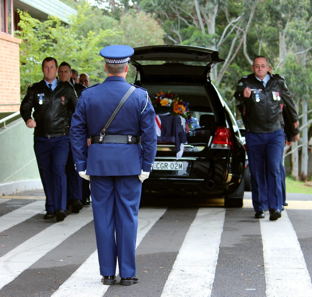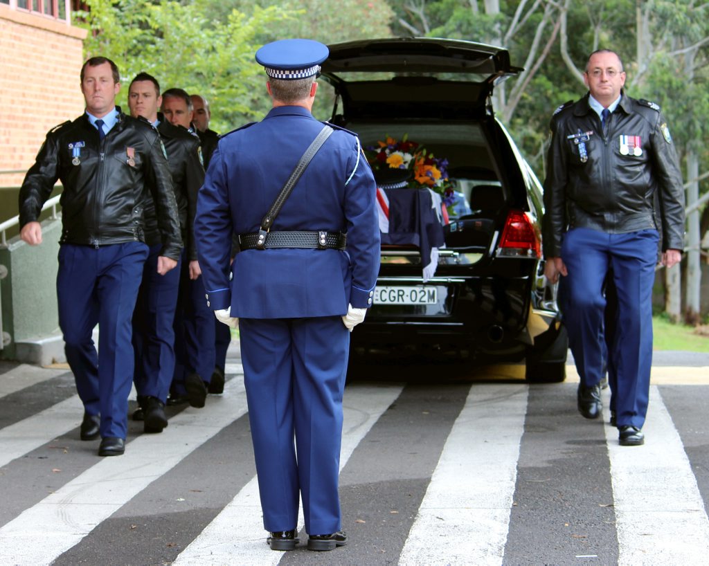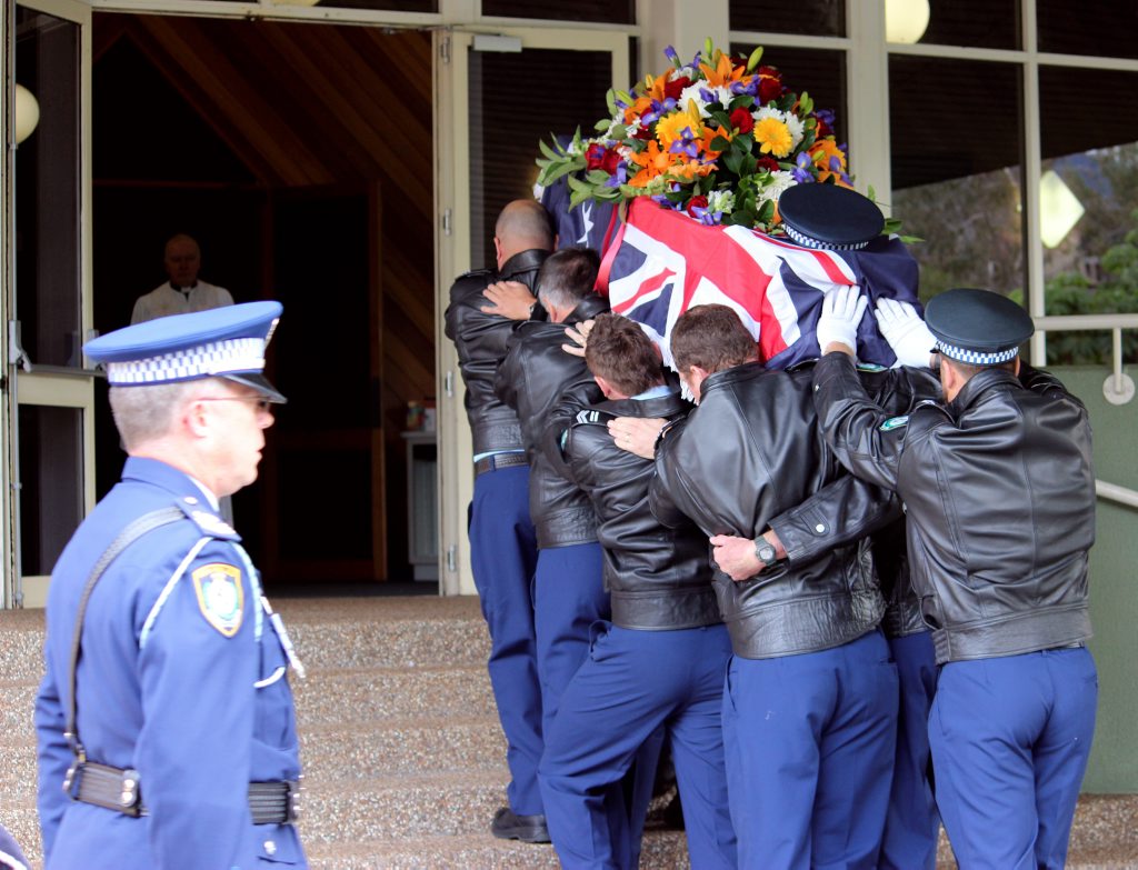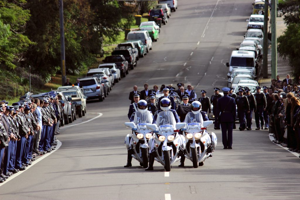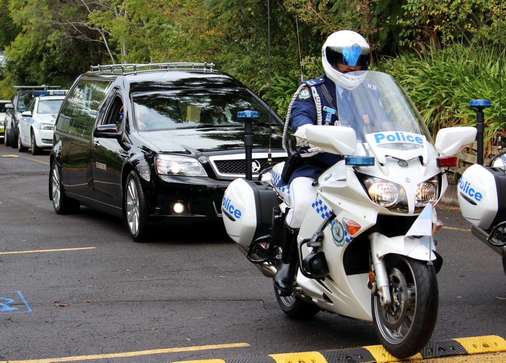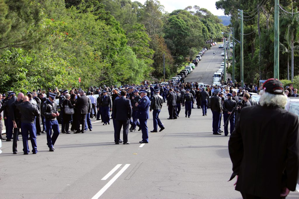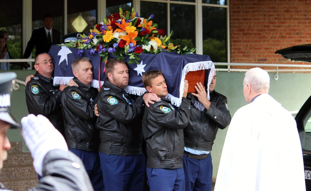 After the full Police funeral, the coffin will be under Police escort from the Church to the Wollongong Crematorium, Berkeley.
