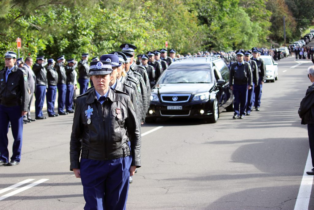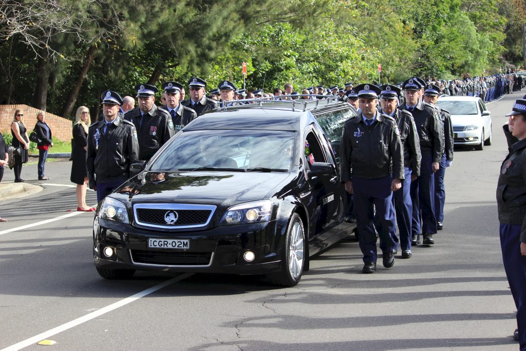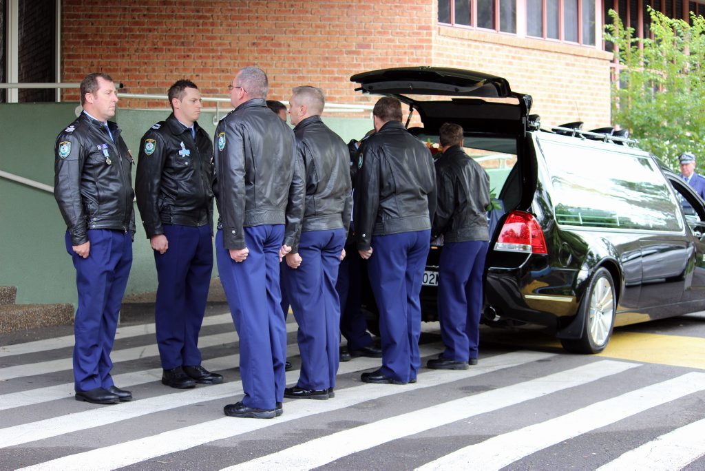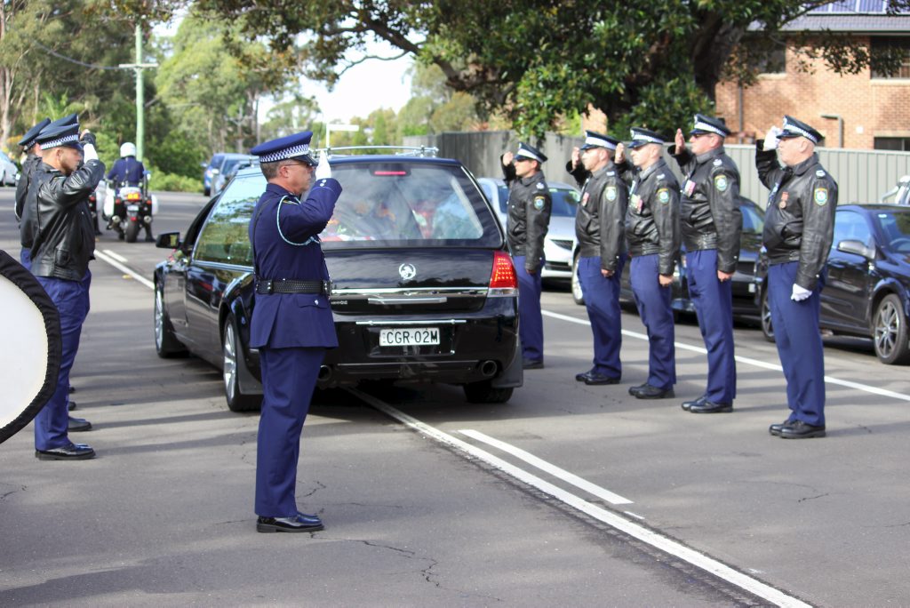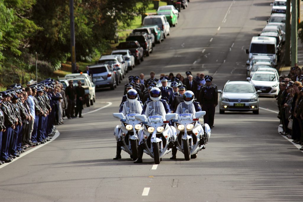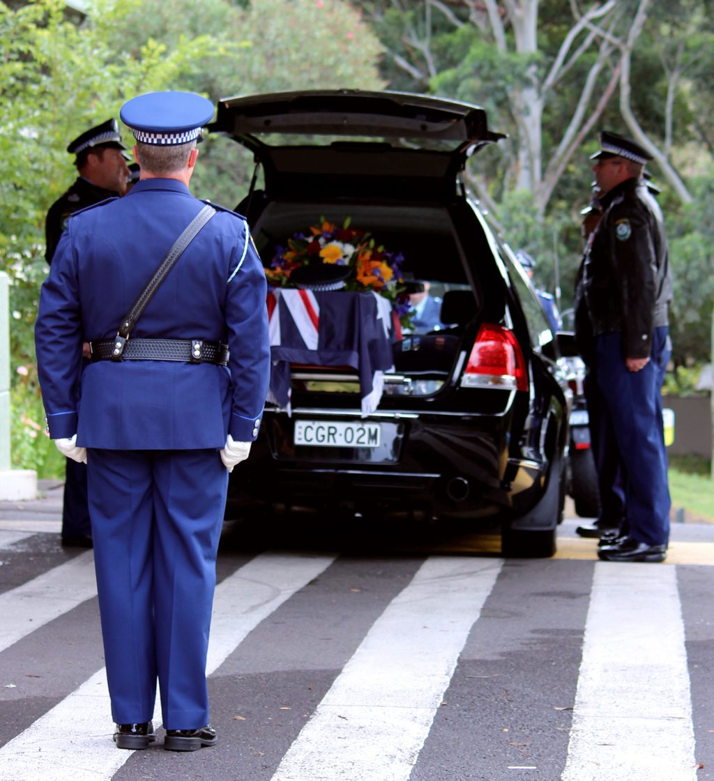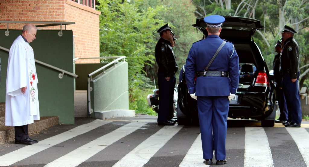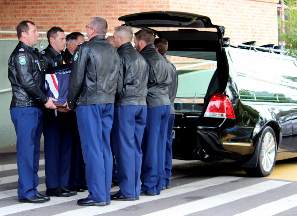 After the full Police funeral, the coffin will be under Police escort from the Church to the Wollongong Crematorium, Berkeley.