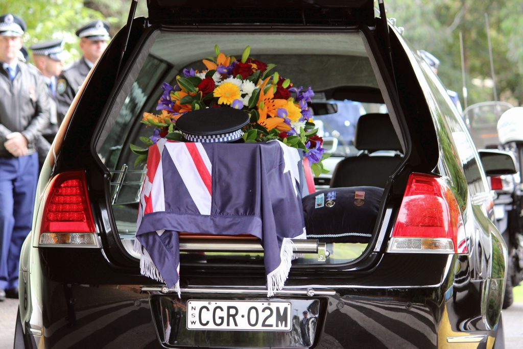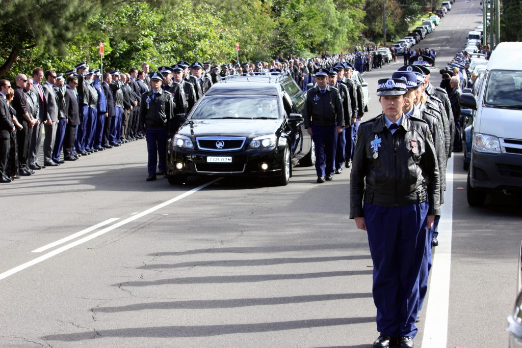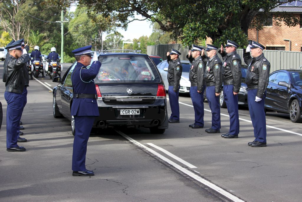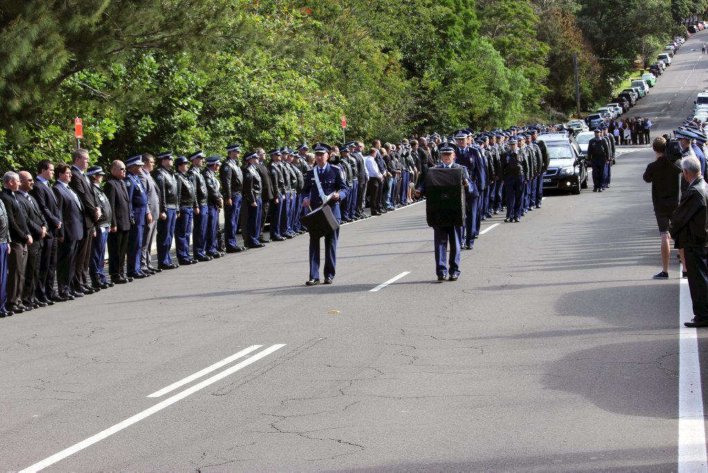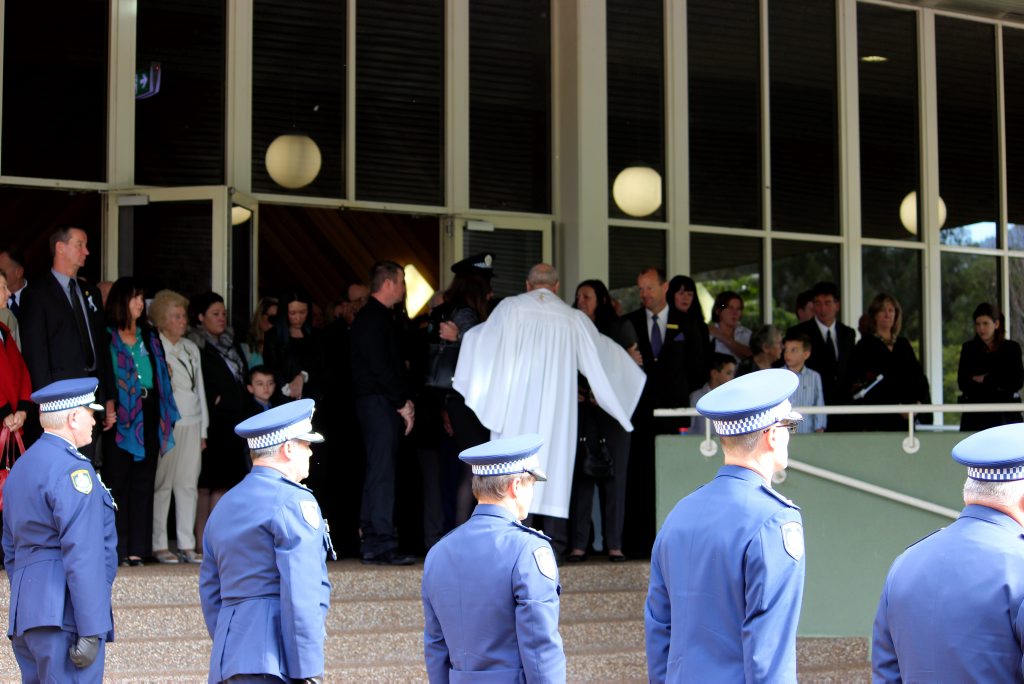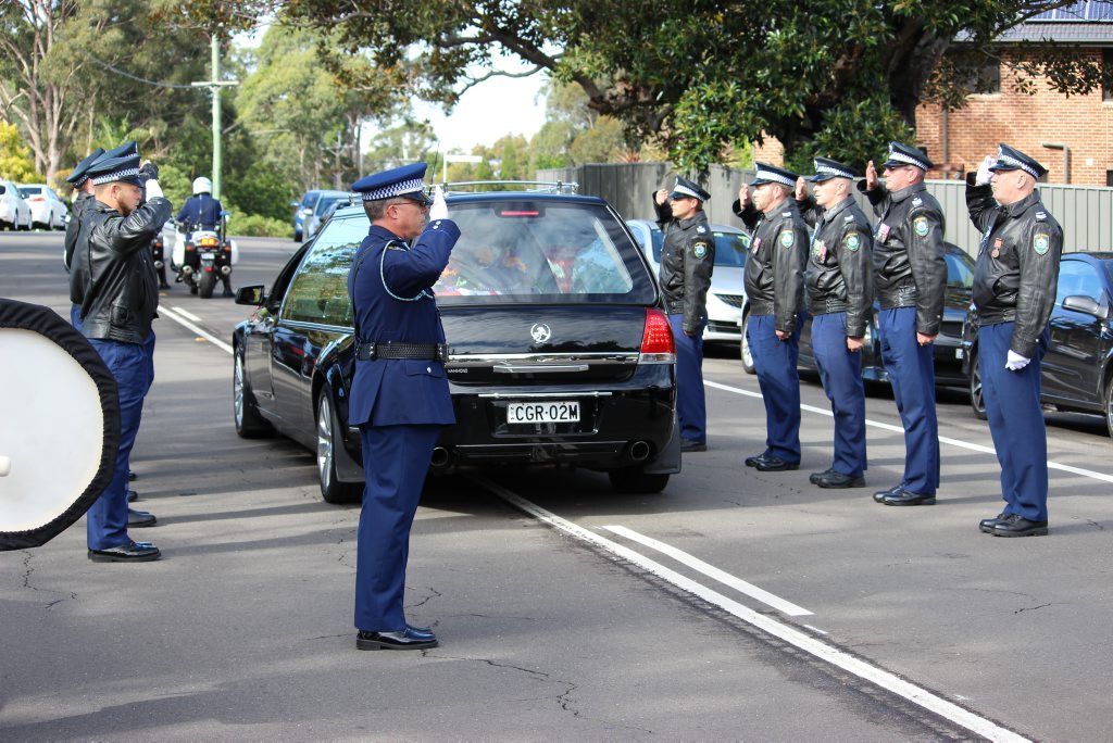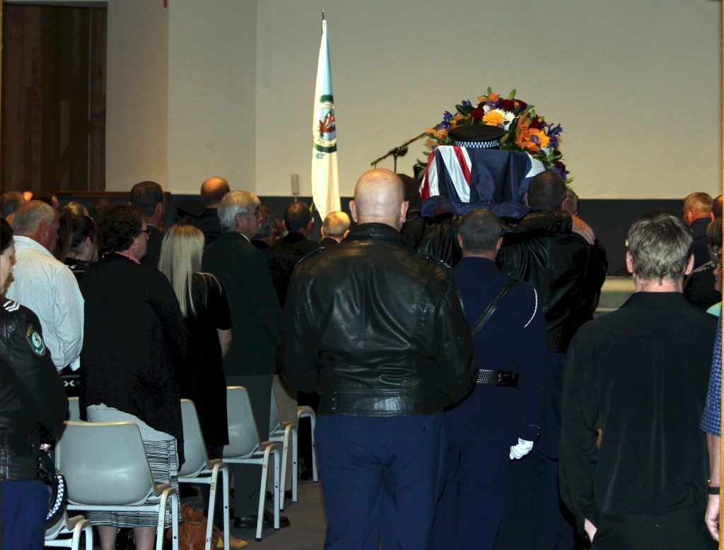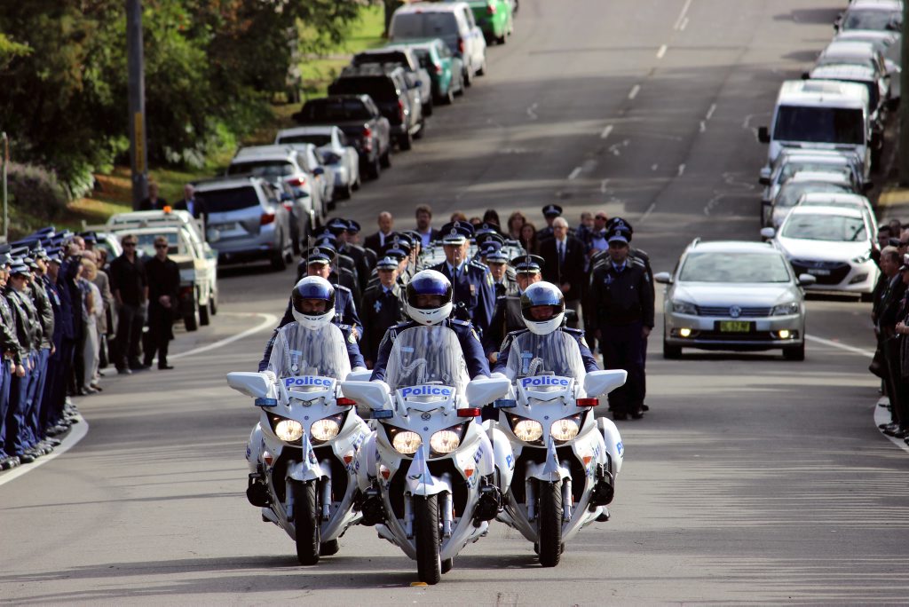 After the full Police funeral, the coffin will be under Police escort from the Church to the Wollongong Crematorium, Berkeley.