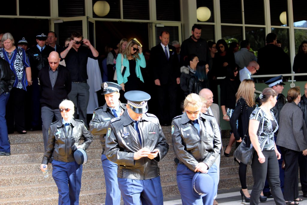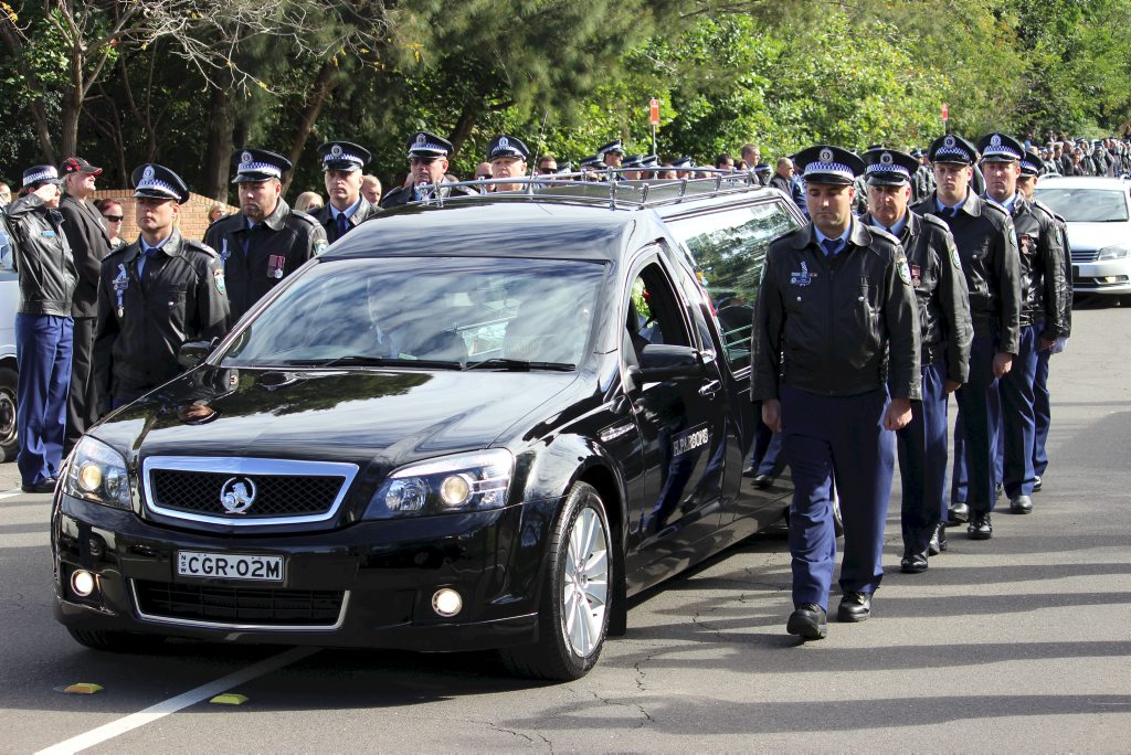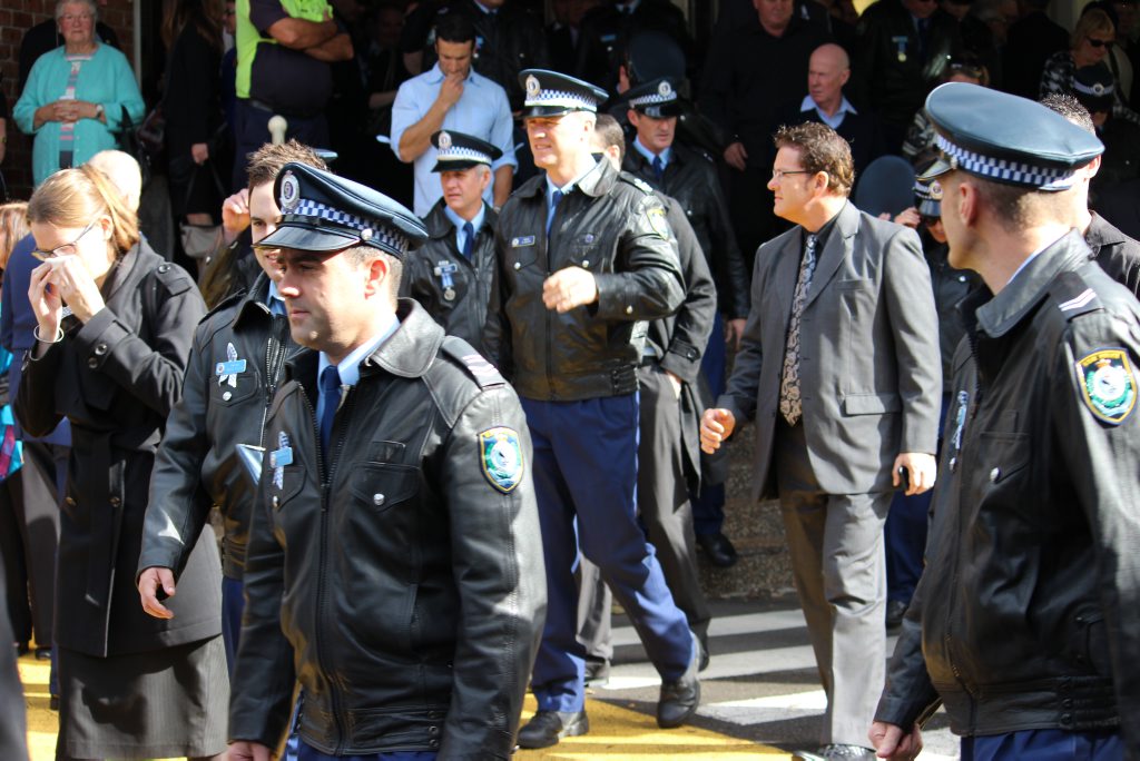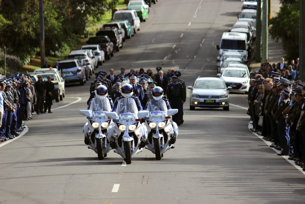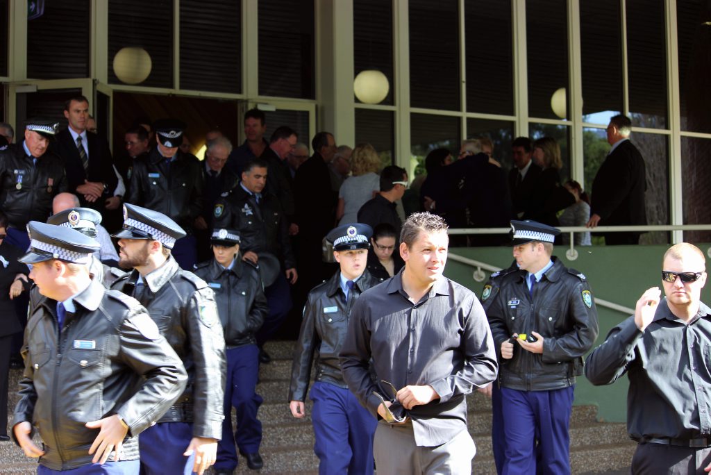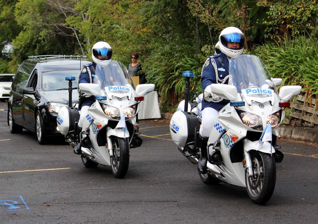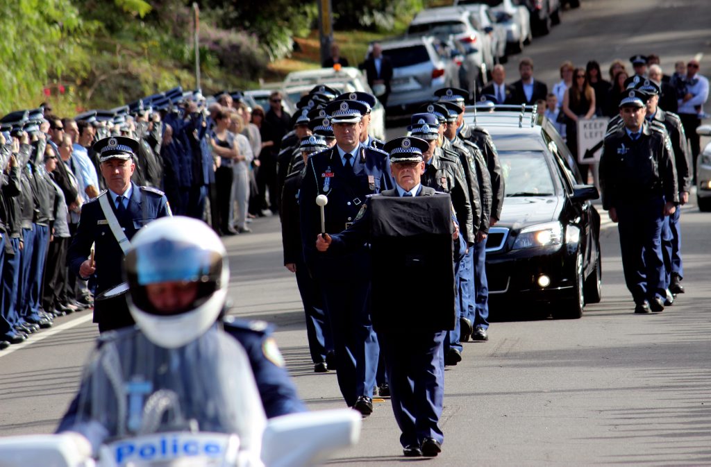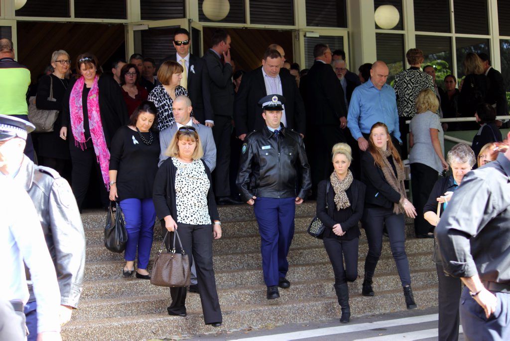 After the full Police funeral, the coffin will be under Police escort from the Church to the Wollongong Crematorium, Berkeley.