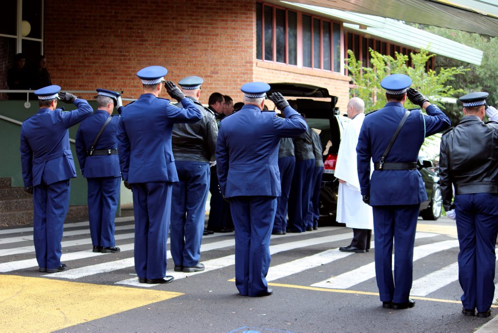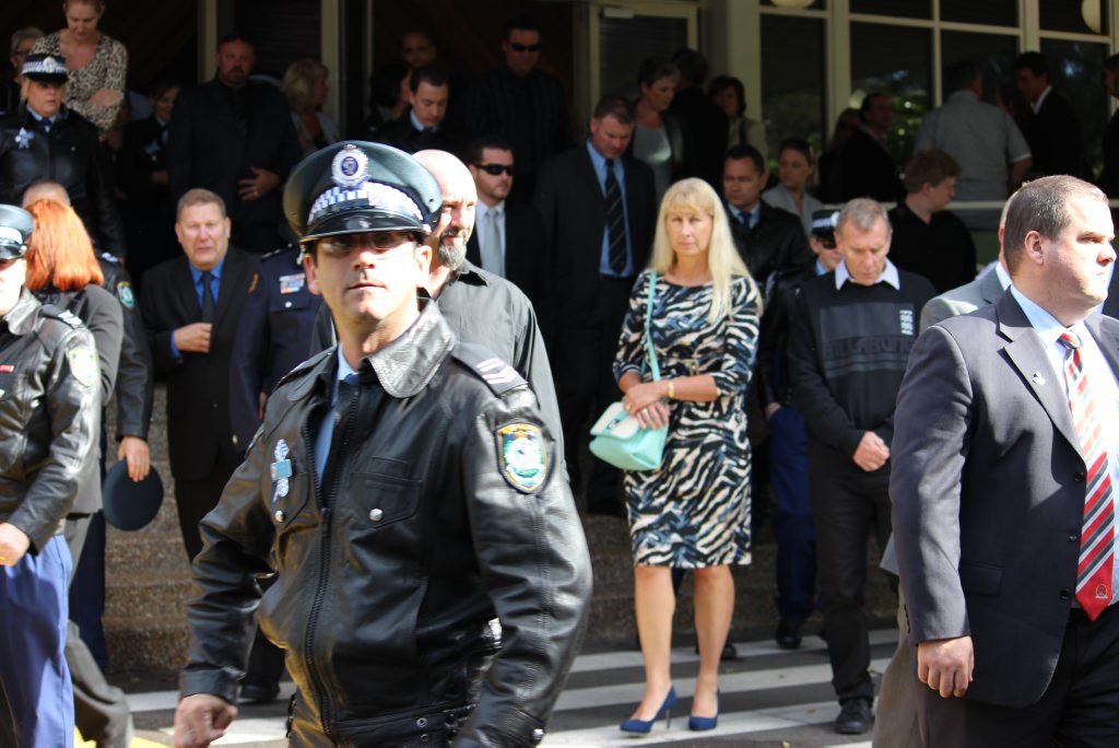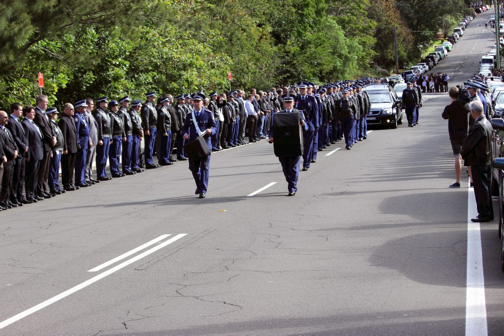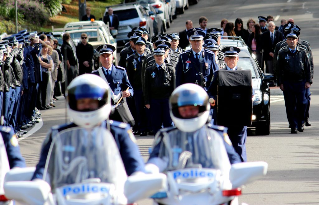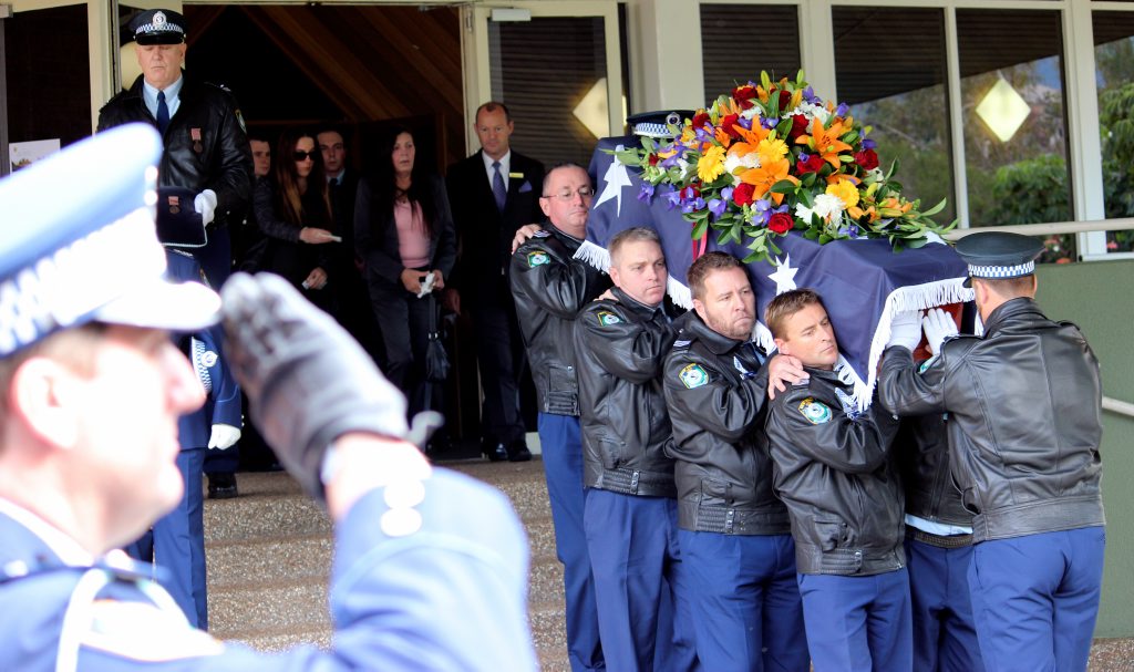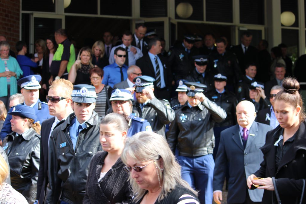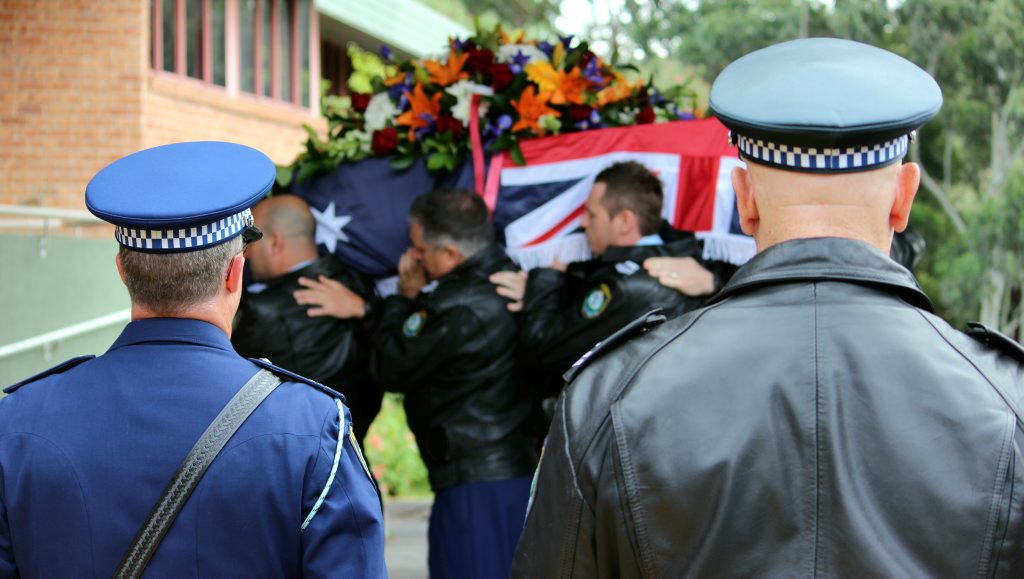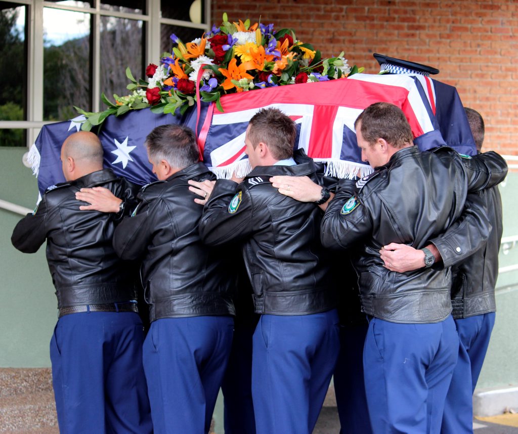After the full Police funeral, the coffin will be under Police escort from the Church to the Wollongong Crematorium, Berkeley.