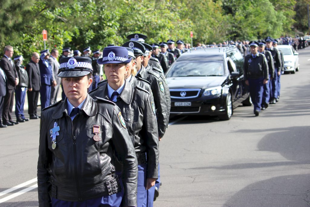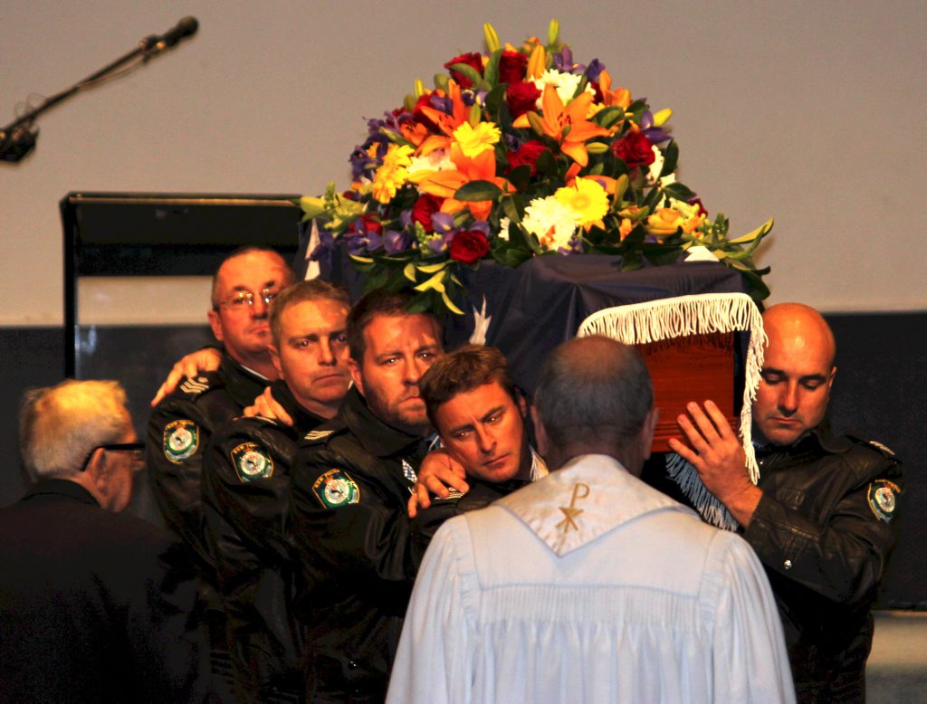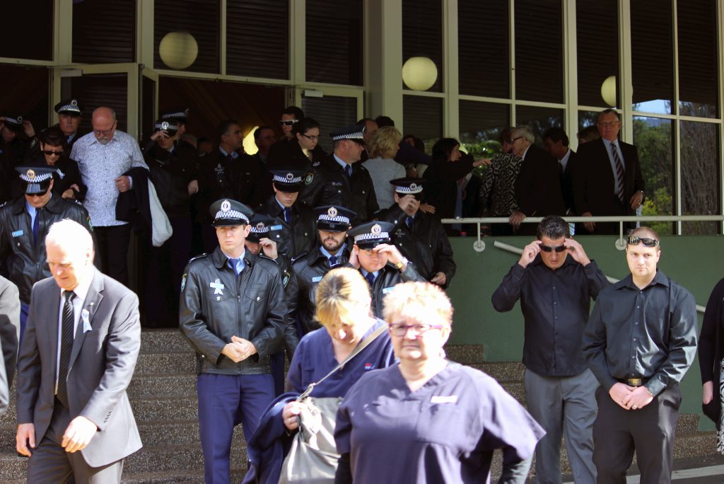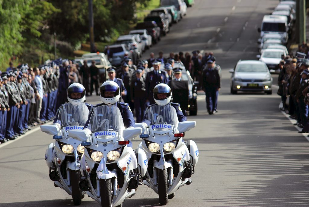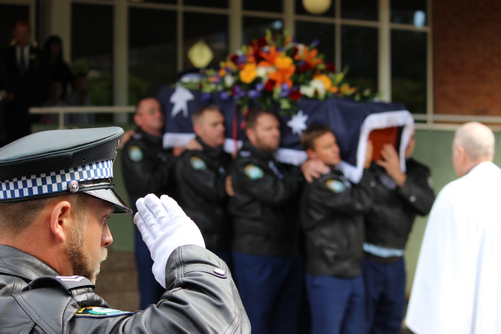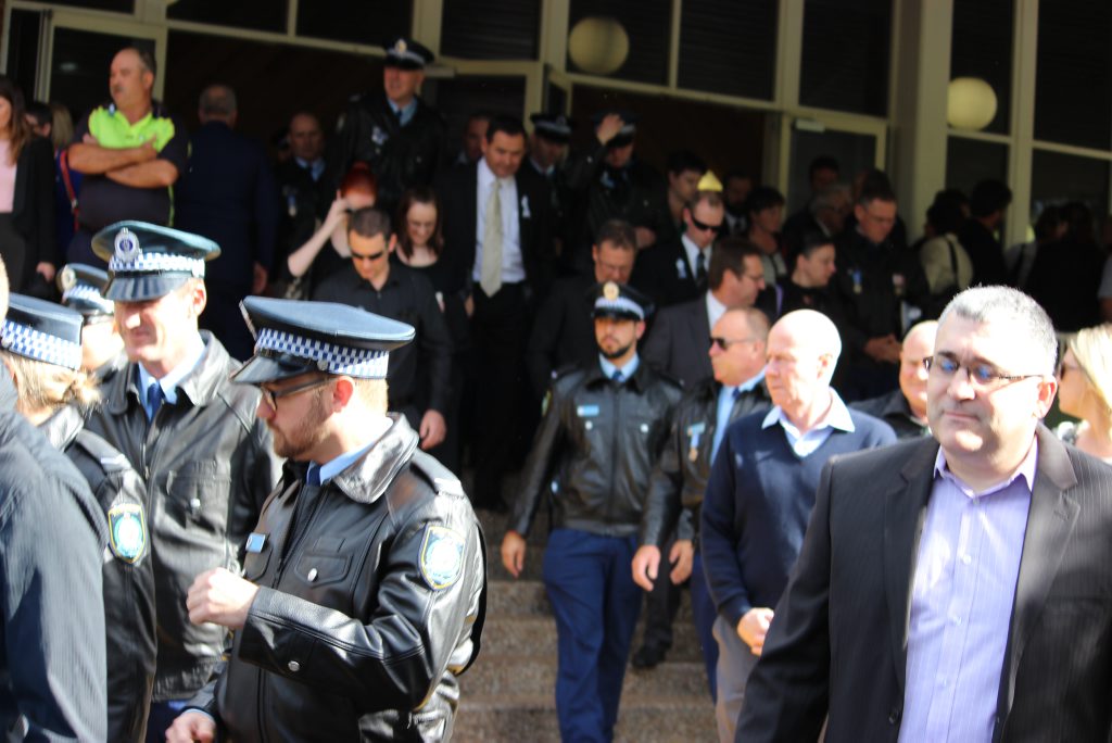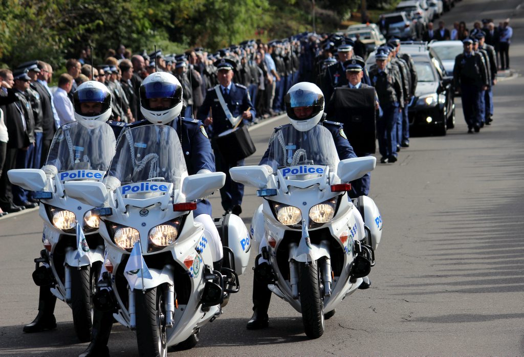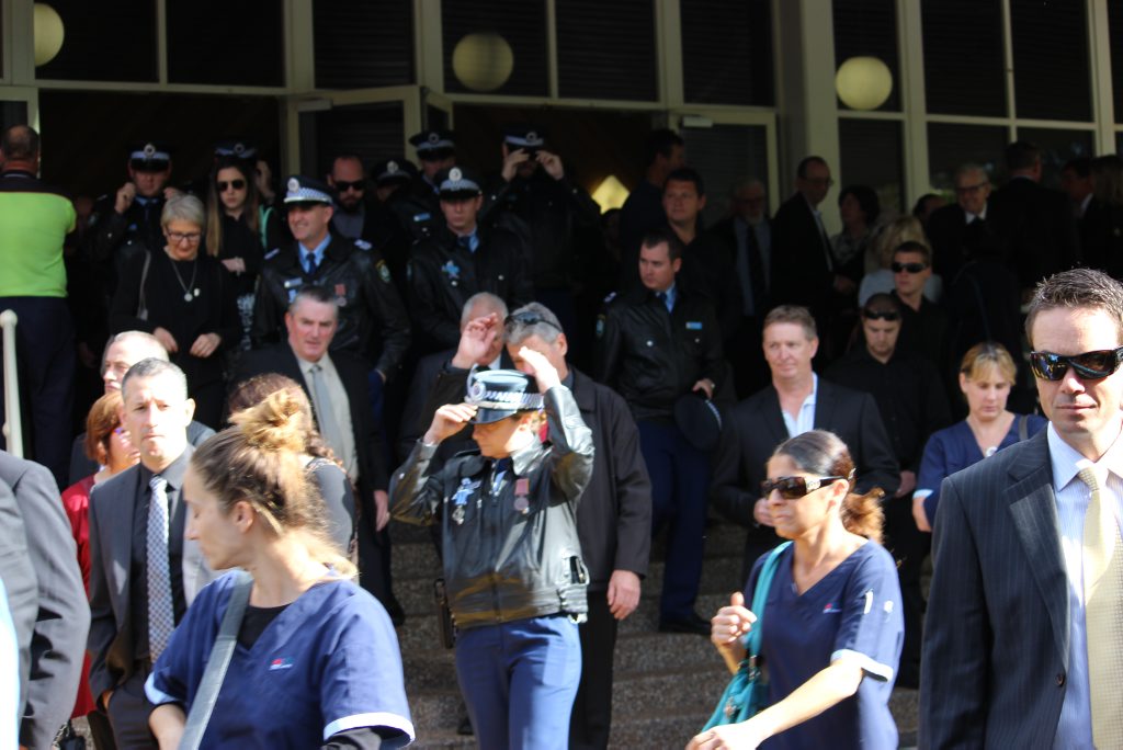 After the full Police funeral, the coffin will be under Police escort from the Church to the Wollongong Crematorium, Berkeley.