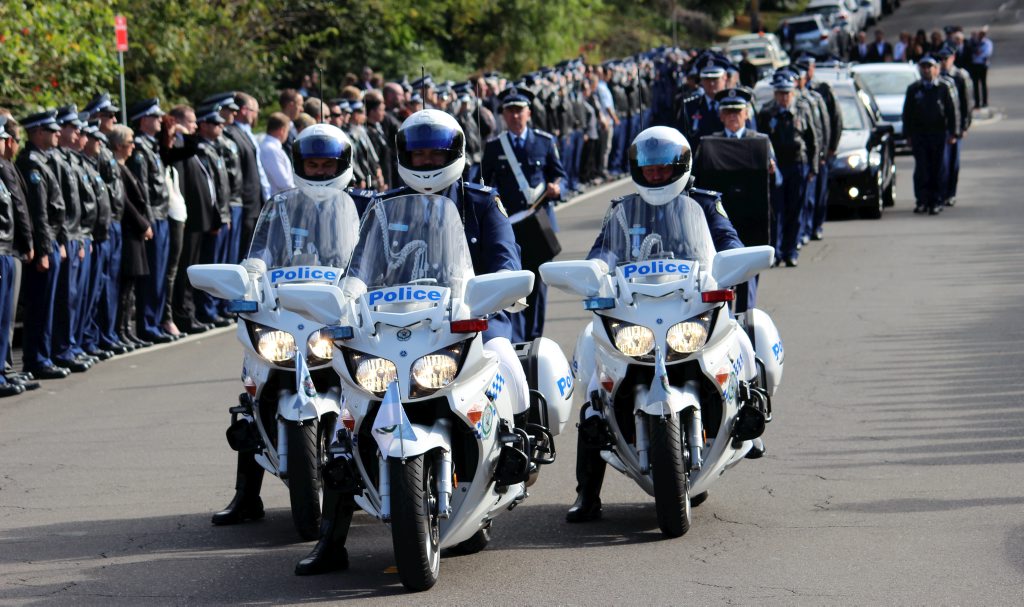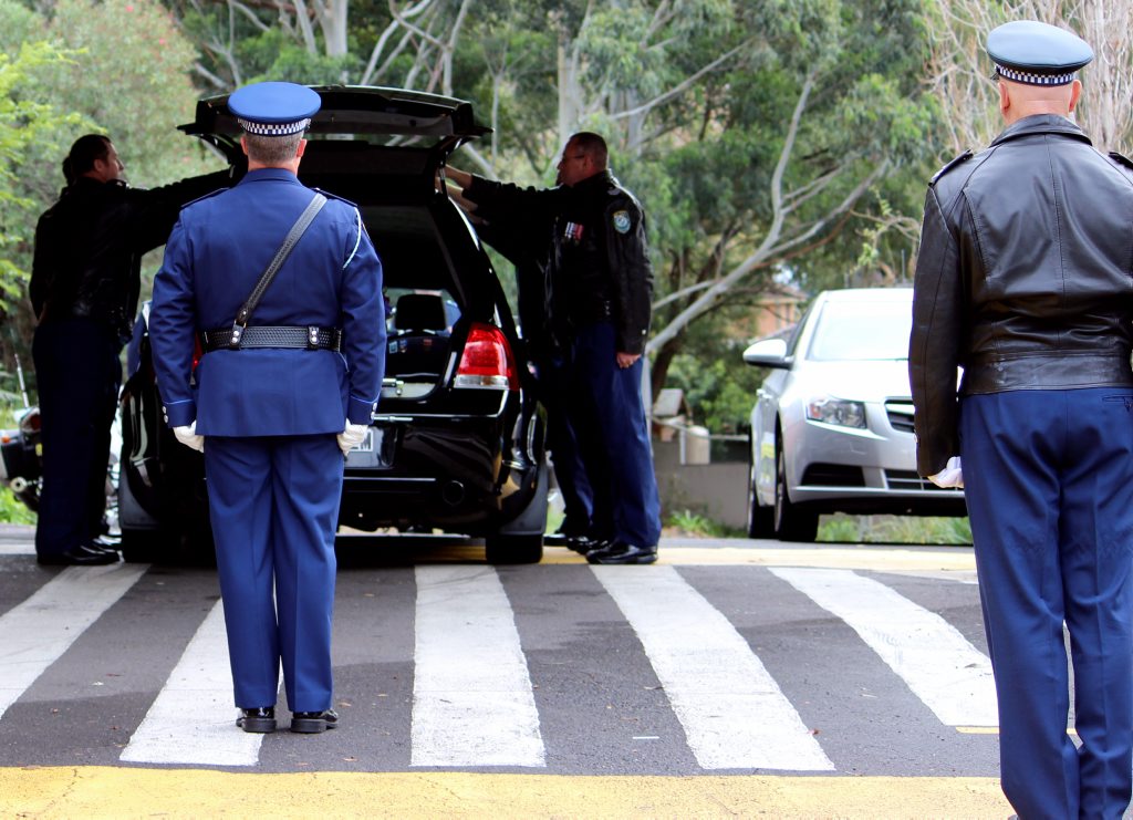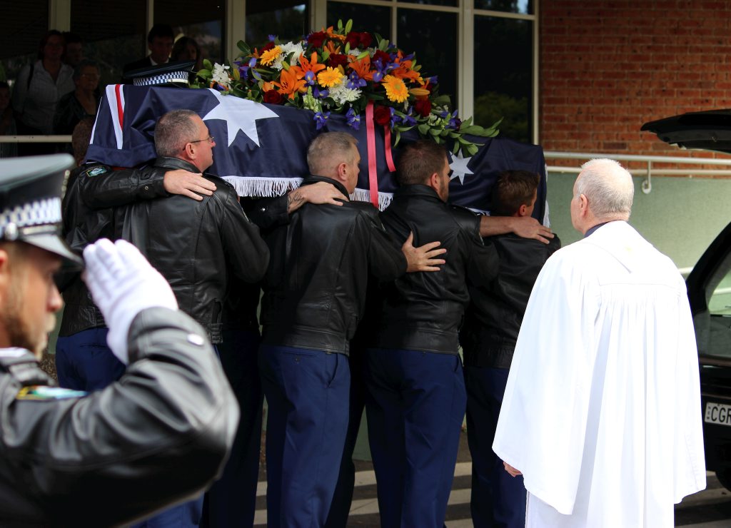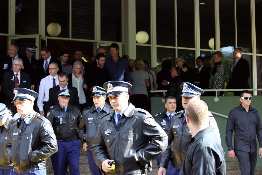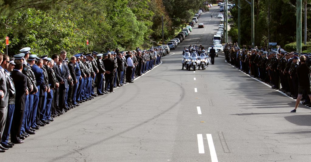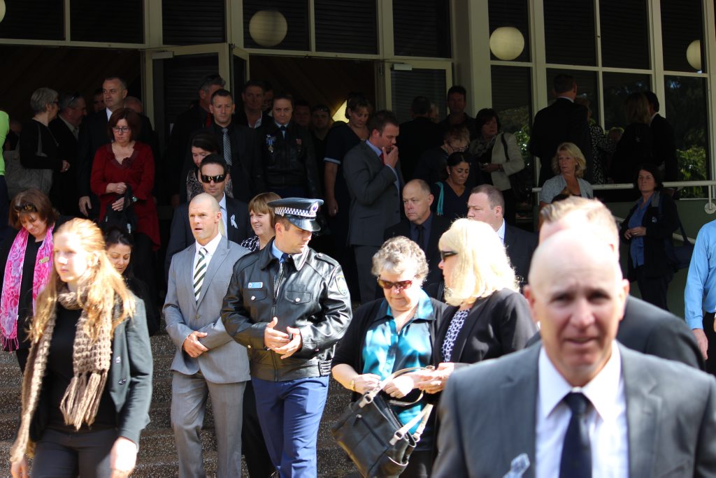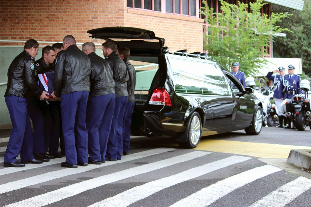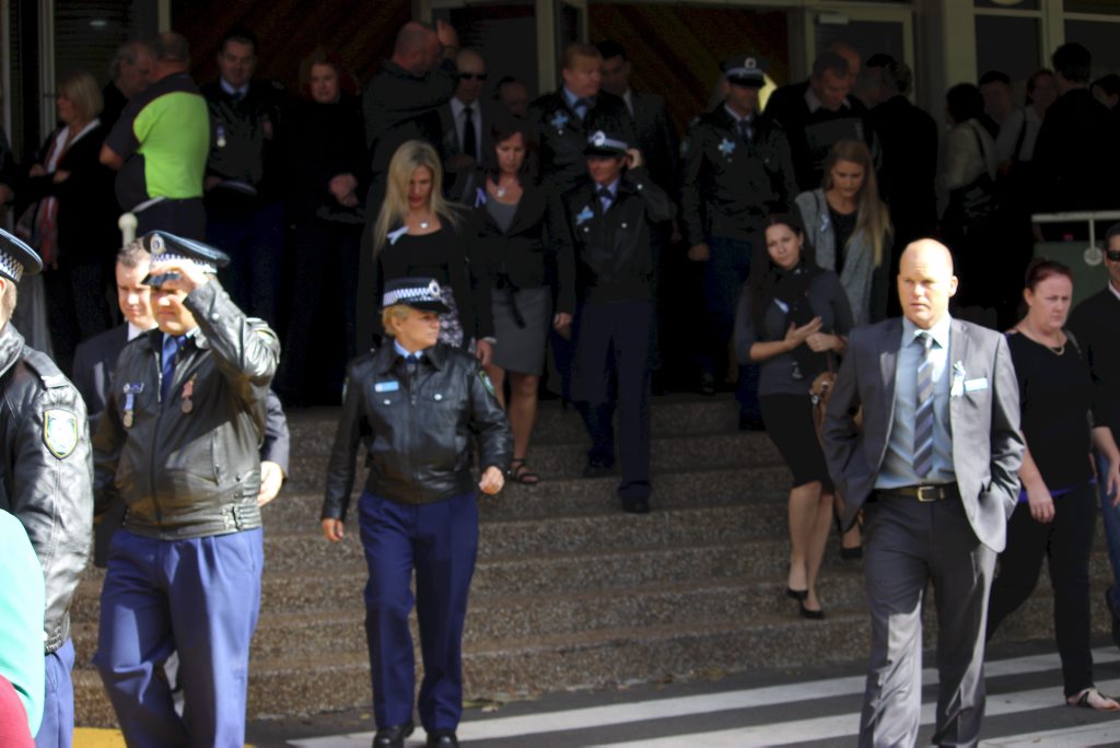 After the full Police funeral, the coffin will be under Police escort from the Church to the Wollongong Crematorium, Berkeley.