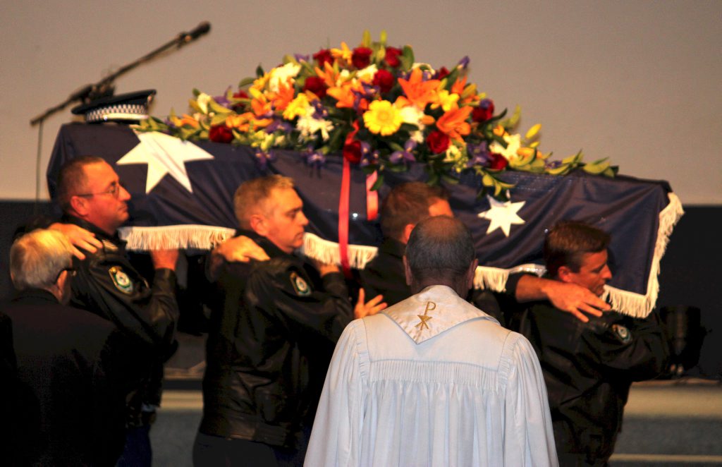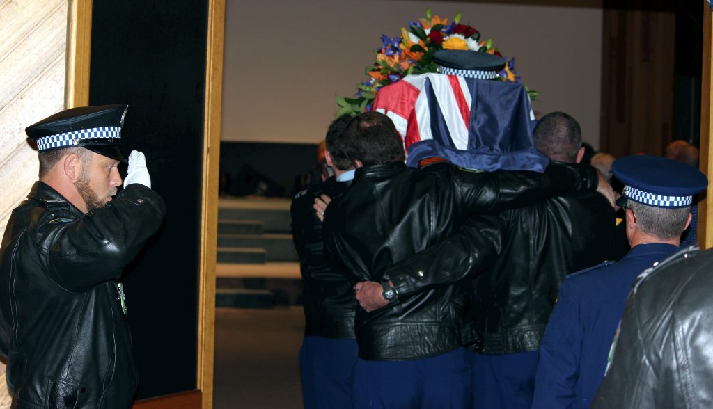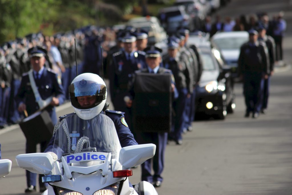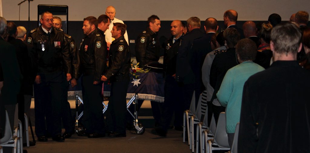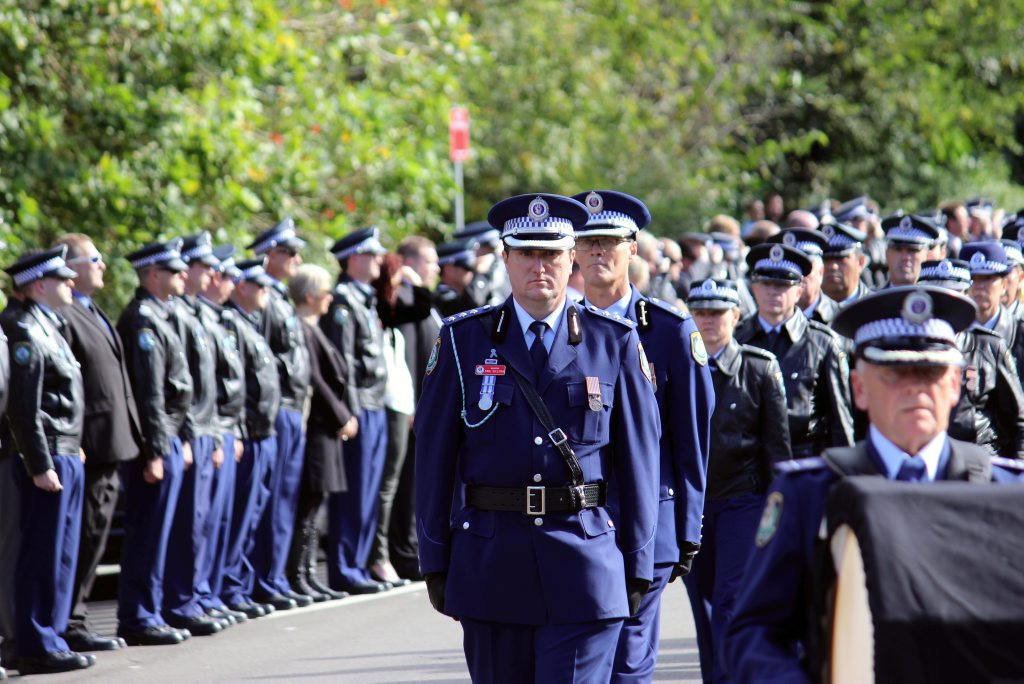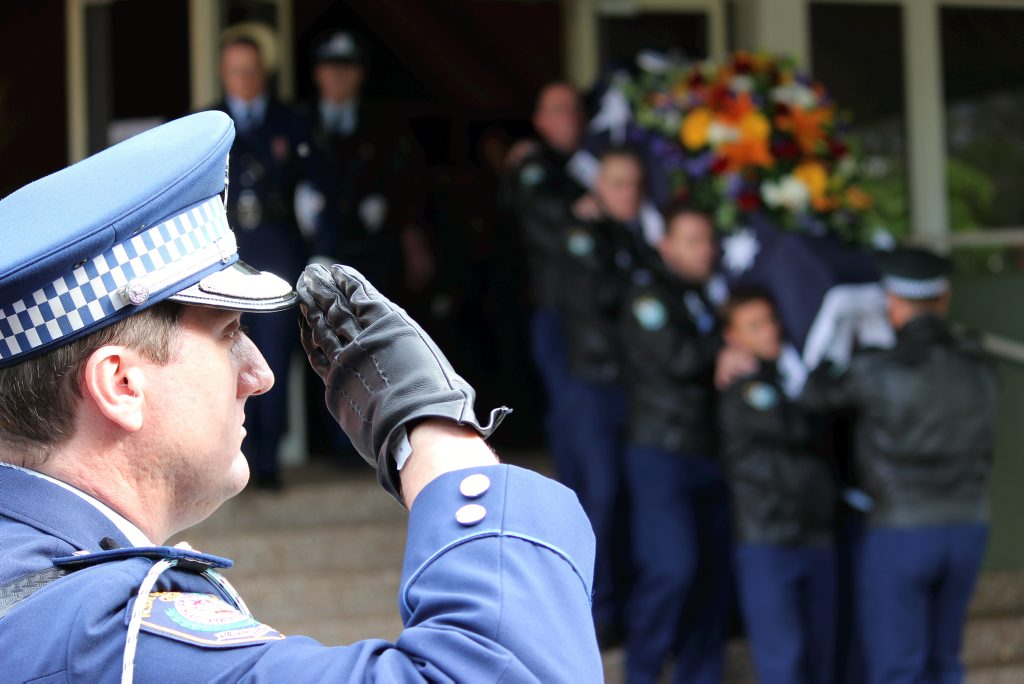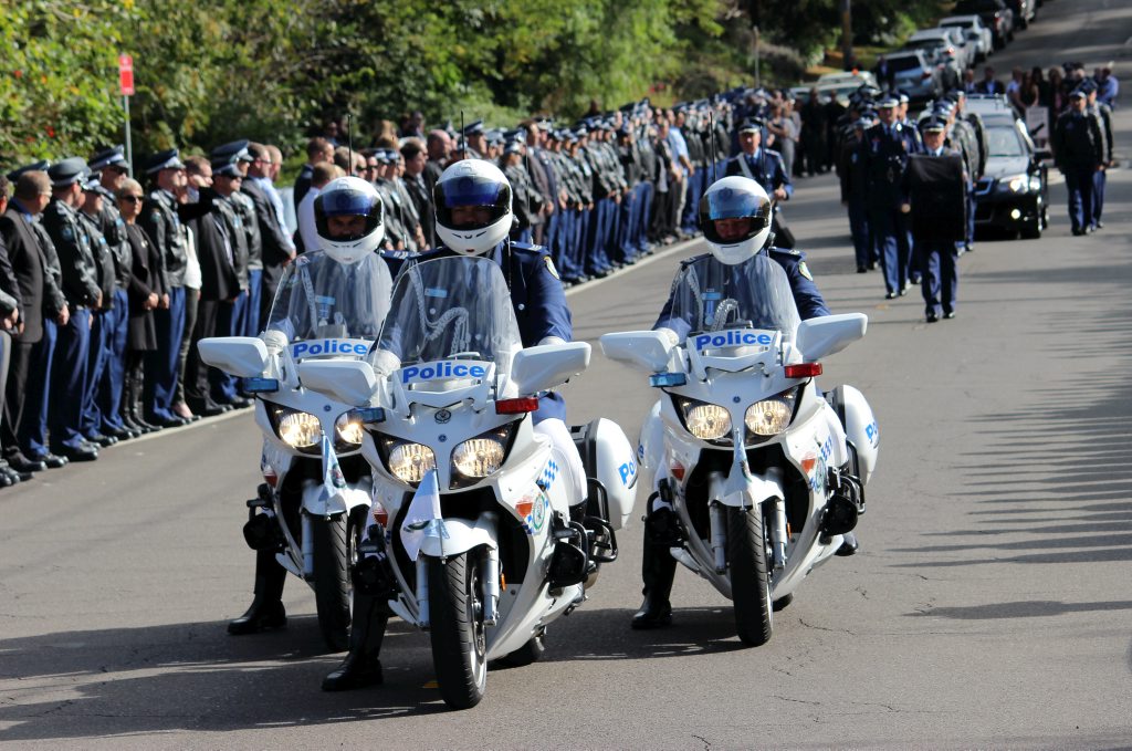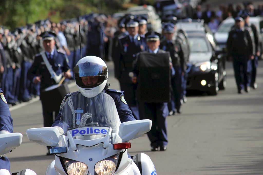 After the full Police funeral, the coffin will be under Police escort from the Church to the Wollongong Crematorium, Berkeley.