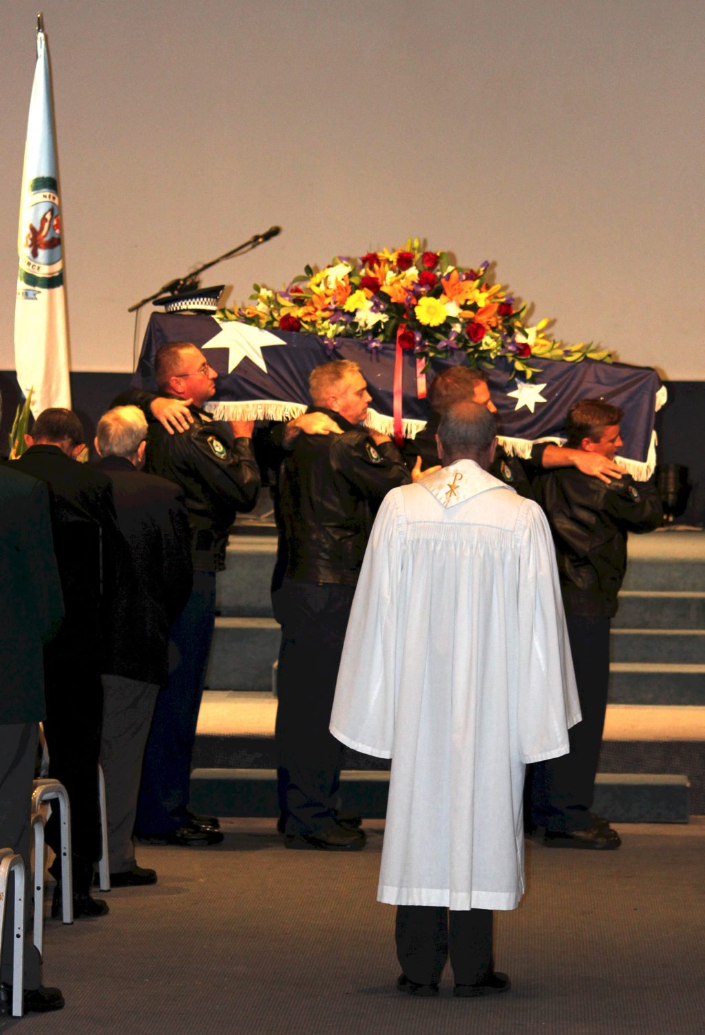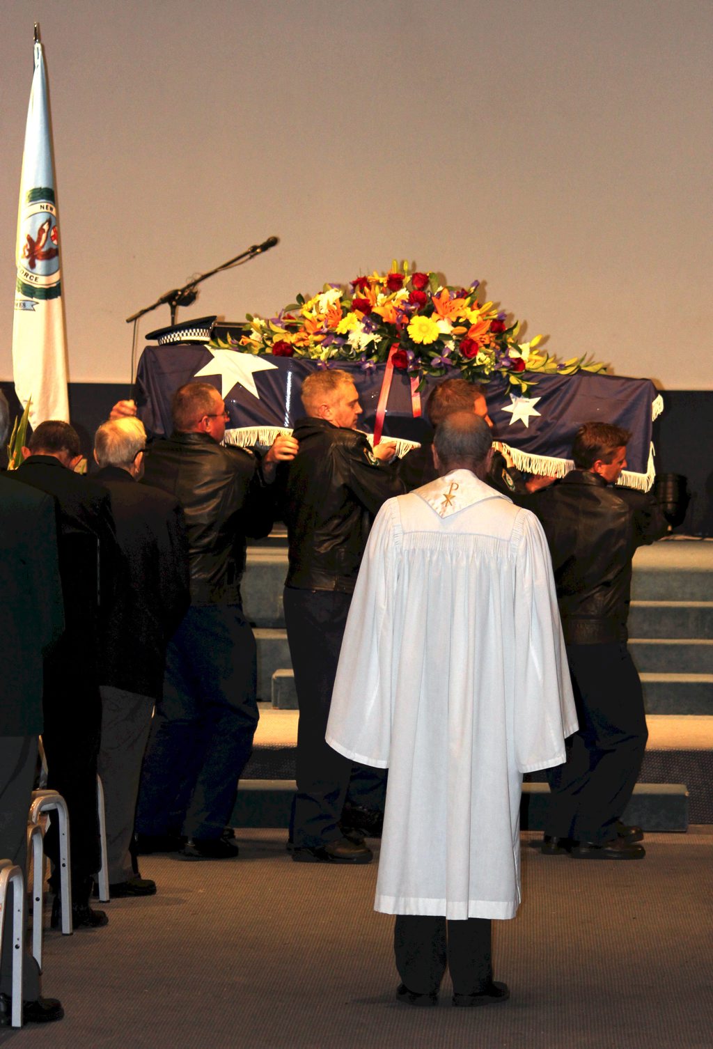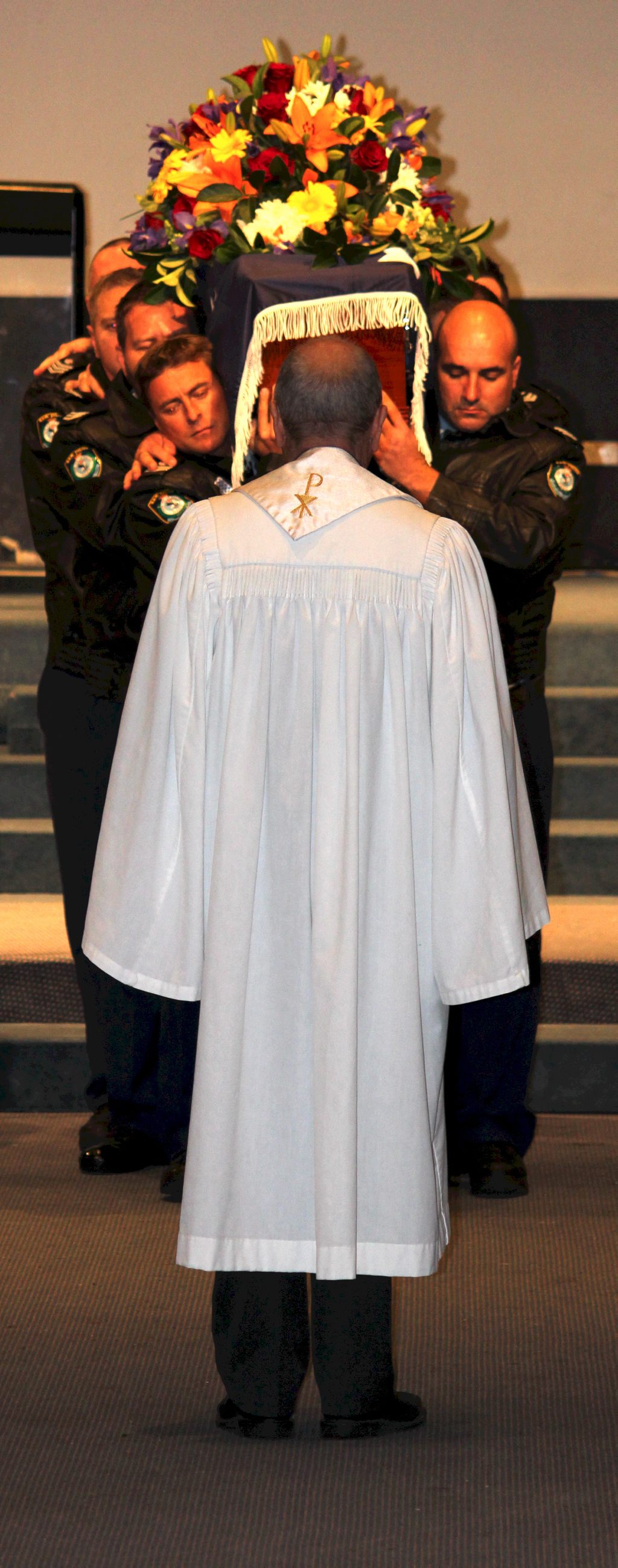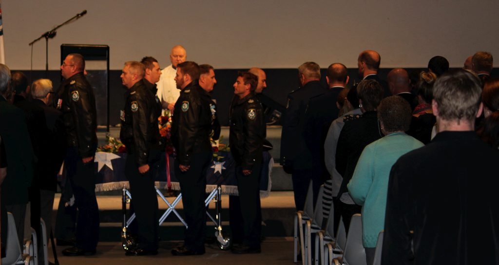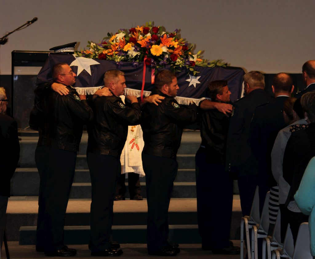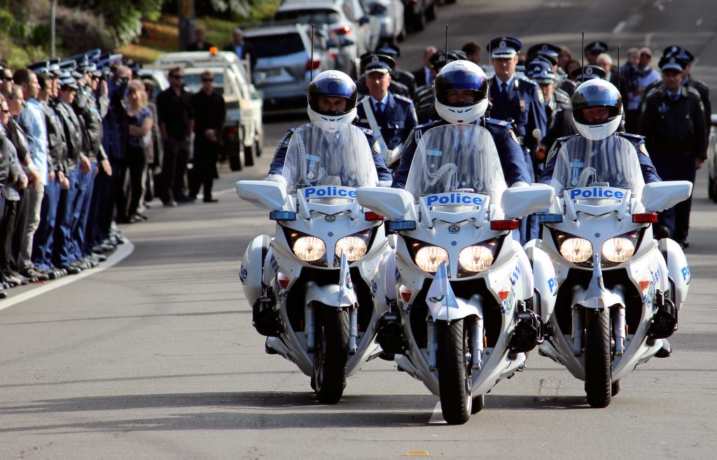 After the full Police funeral, the coffin will be under Police escort from the Church to the Wollongong Crematorium, Berkeley.
