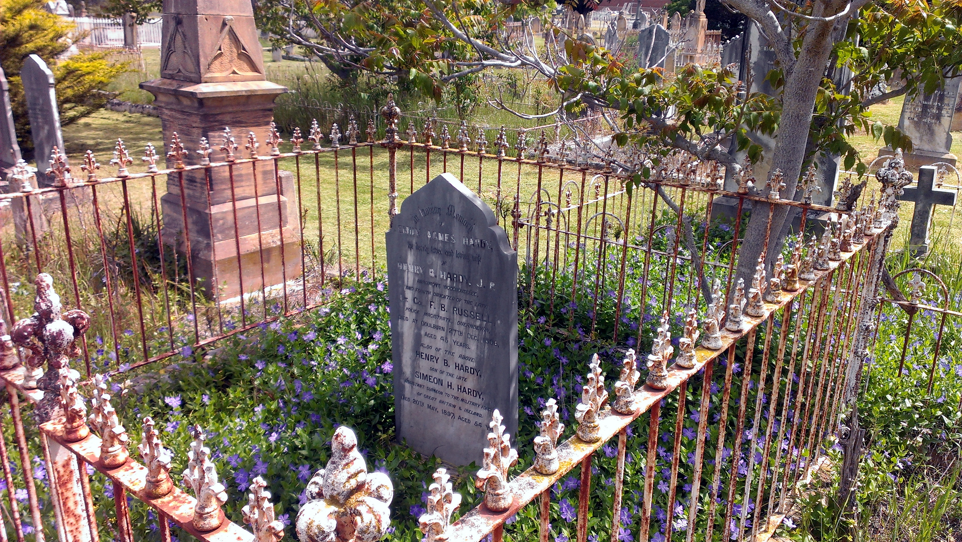 F. B. RUSSELL – Grave of Emily Agnes HARDY – 4th daughter of the Late Lt. Col. F. B. Russell. Emily is buried at St. Saviour’s Cemetery, Cemetery Rd, Goulburn, Opposite the Goulburn Gaol.F. B. RUSSELL – Grave of Emily Agnes HARDY – 4th daughter of the Late Lt. Col. F. B. Russell.F. B. RUSSELL – Grave of Emily Agnes HARDY – 4th daughter of the Late Lt. Col. F. B. Russell.