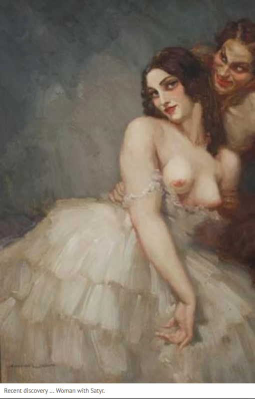 Woman with Satyr, a nude by Norman Lindsay, was discovered in 2010 gathering dust in the vaults of the Art Gallery of NSW, with scant details of its origin and date.