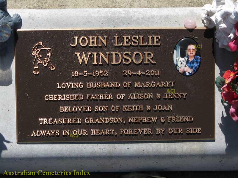 John Leslie WINDSOR18-5-1952 29-4-2011Loving husband of MargaretCherished father of Alison & JennyBeloved son of Keith and JoanTreasured grandson, nephew & friendAlways in our heart, forever by our side.