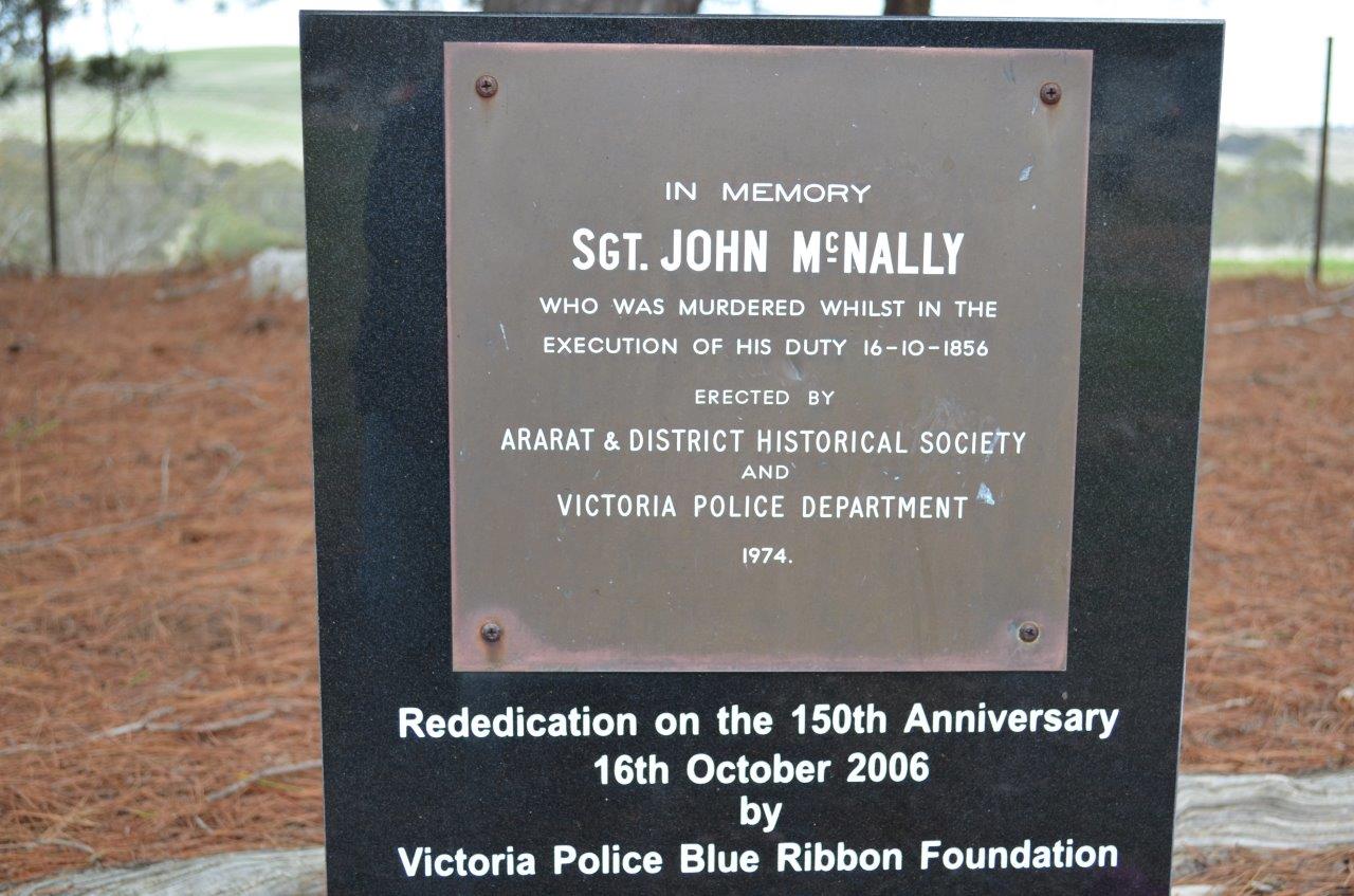 Sergeant John McNally became the first member of the Victoria Police to be feloniously slain in the line of duty when he was murdered at the Cathcart diggings on 16th October, 1856.