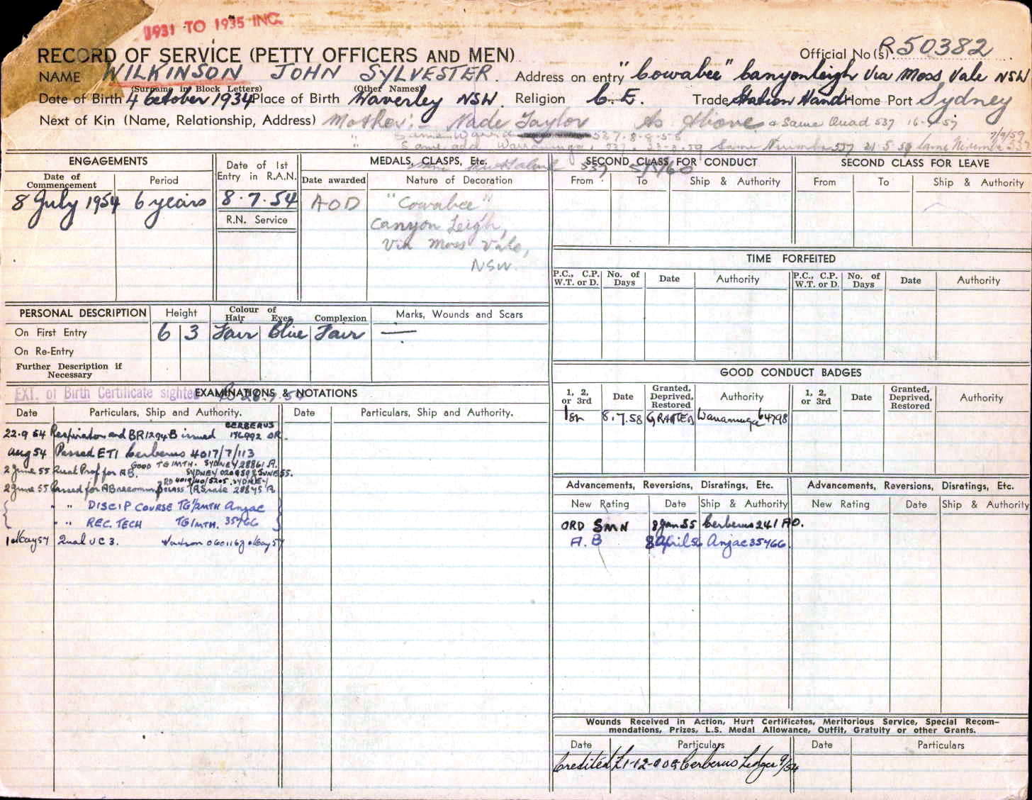 Prior to joining the NSWPF, Wilko Served in the Royal Australian Navy as per his Service Card below: