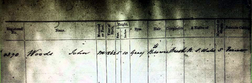 Described as being born in 1862, 5′ 10″ tall, grey eyes and light brown hair with a ‘fresh’ complexion.