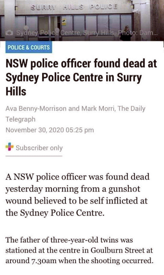 A spokesperson for the Police Association of NSW said the union was aware of the death and would be providing support to those affected.