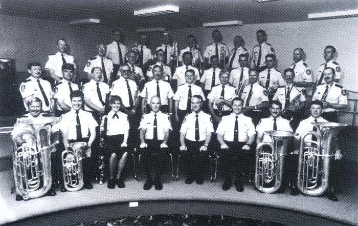 The Members of the Band in 1988 were: Special Constable Anthony Brahe, Ross McKinlay, John Woodbury, Merv Knott, Drum Major Sergeant Ian Keuning, Constable First Class Robert White, David Hatch, John Simensen, Ron Davidson, Mal Pearce, Graham Nichols, Robert Gillespie, Ray Bensted, Bob Harris, David Llewellyn, Senior Constable Trevor Marsdem, Jim Nairn, Paul Blankesteijn, Bill Stojcevski, Ted Bromfield, Laurie Goodfellow, Ray Willis, Constable Rod Hunter-Brittain, Mick Reid, Ken Dean, Martin Anderson, Ron Gillett, Mark Holland, John Saunders, Melissa Telford, Director of Music, Sergeant Dennis Williams, Commander, Senior Sergeant Barry Grove-Jones, Administration Officer, Senior Constable Rob McMaster, Steve Nolan, Constable First Class Michael Donohoe, Special Constable Peter Almond. |