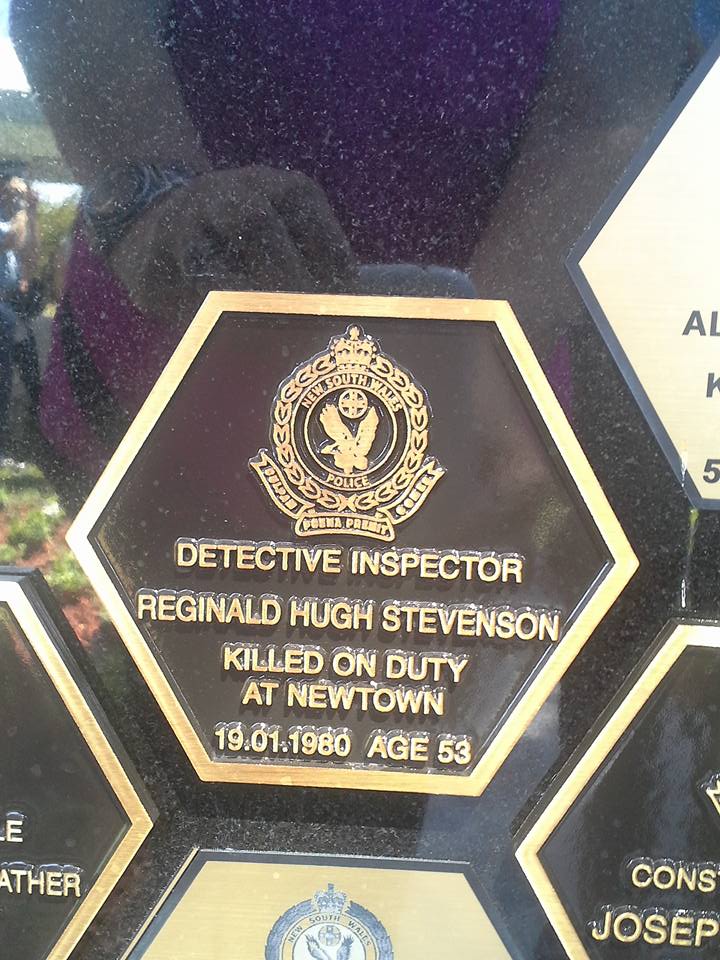 We were also told the story of Detective Inspector Reginald Hugh Stevenson—I was honoured on the day to meet his widow, Ms Edna Stevenson, who still had strong memories of the incident that led to Inspector Stevenson’s death. Detective Inspector Stevenson joined the NSW Police Force as a cadet in 1943 at the age of 17. In an act of extraordinary selflessness, Detective Inspector Stevenson was on annual leave on 9 December 1974 when he decided to go to work to assist in the planned arrest of a dangerous offender in Newtown, at the time telling his wife, “I don’t want my boys doing this on their own.” During the operation he was shot in the chest after leading his team in pursuit of the offender.