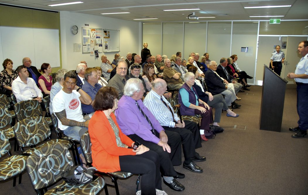 THURSDAY  8 SEPTEMBER 2016 LAKE ILLAWARRA RETIRED POLICE DAY. 45 people turned out to Lake Illawarra ( Oak Flats ) Police Station at 10am today for the Retired Police Day. 15 National Police Service Medals were awarded to various Police who live in and / or worked in the Lake Illawarra Area Command. These awards were presented by the current LA Commander, Zoran Dzevlan. The Group being Welcomed by Sgt Scott Abbett.