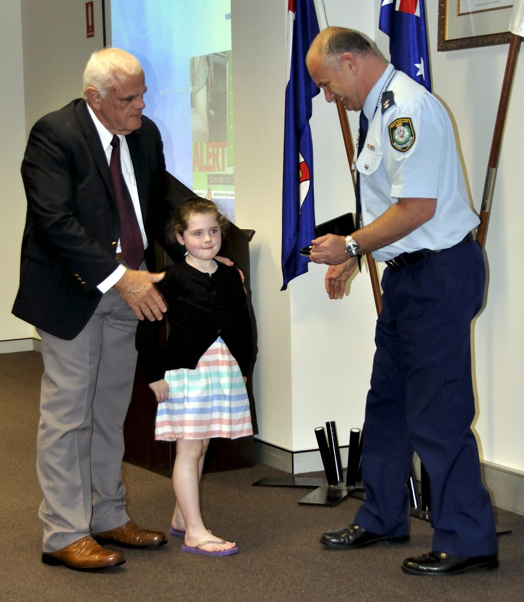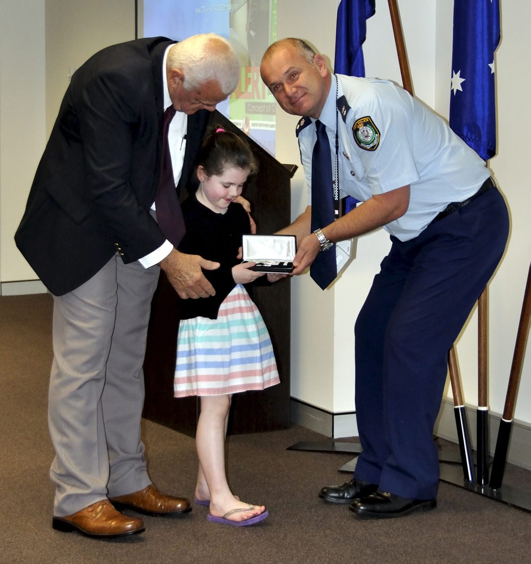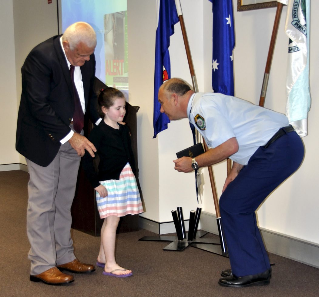 Eoin PETERS & the Granddaughter of Gail BROOKS – Rubie, accepting Gail’s Medal.