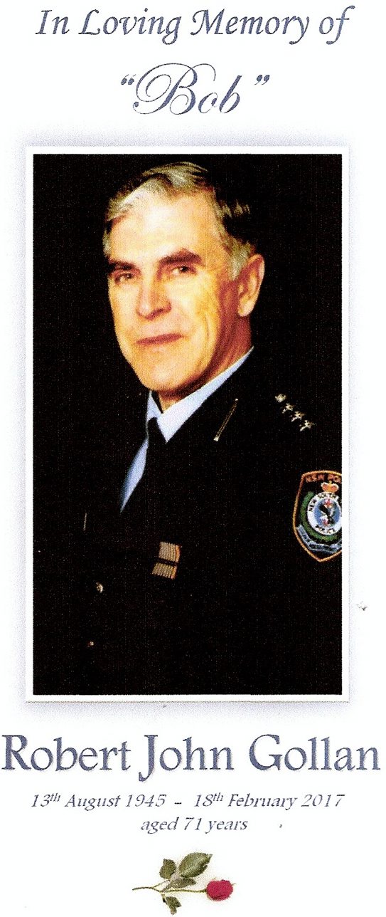 Feeling sad. K.J Higgins, Lloyd Morrison, Kev Verdon and now Bob Gollan.  4 great men, workmates and coppers. I always thought of them as immortal.
