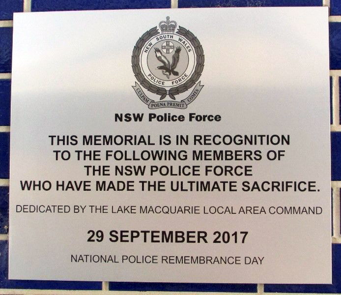 Chief Inspector Murray Lundberg of Lake Macquarie LAC presided over a private ceremony attended by police, local high school students, and the families of the fallen officers.