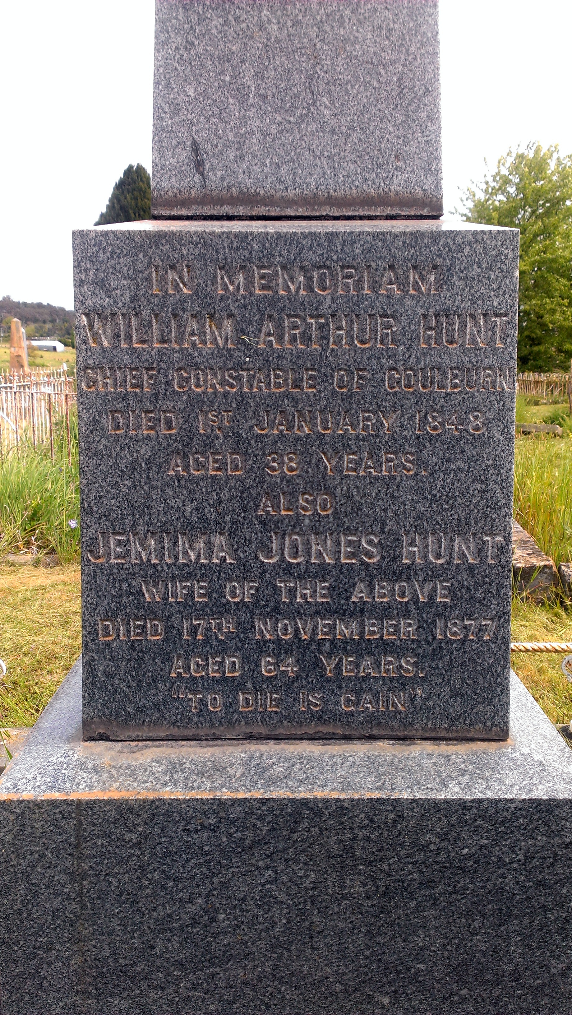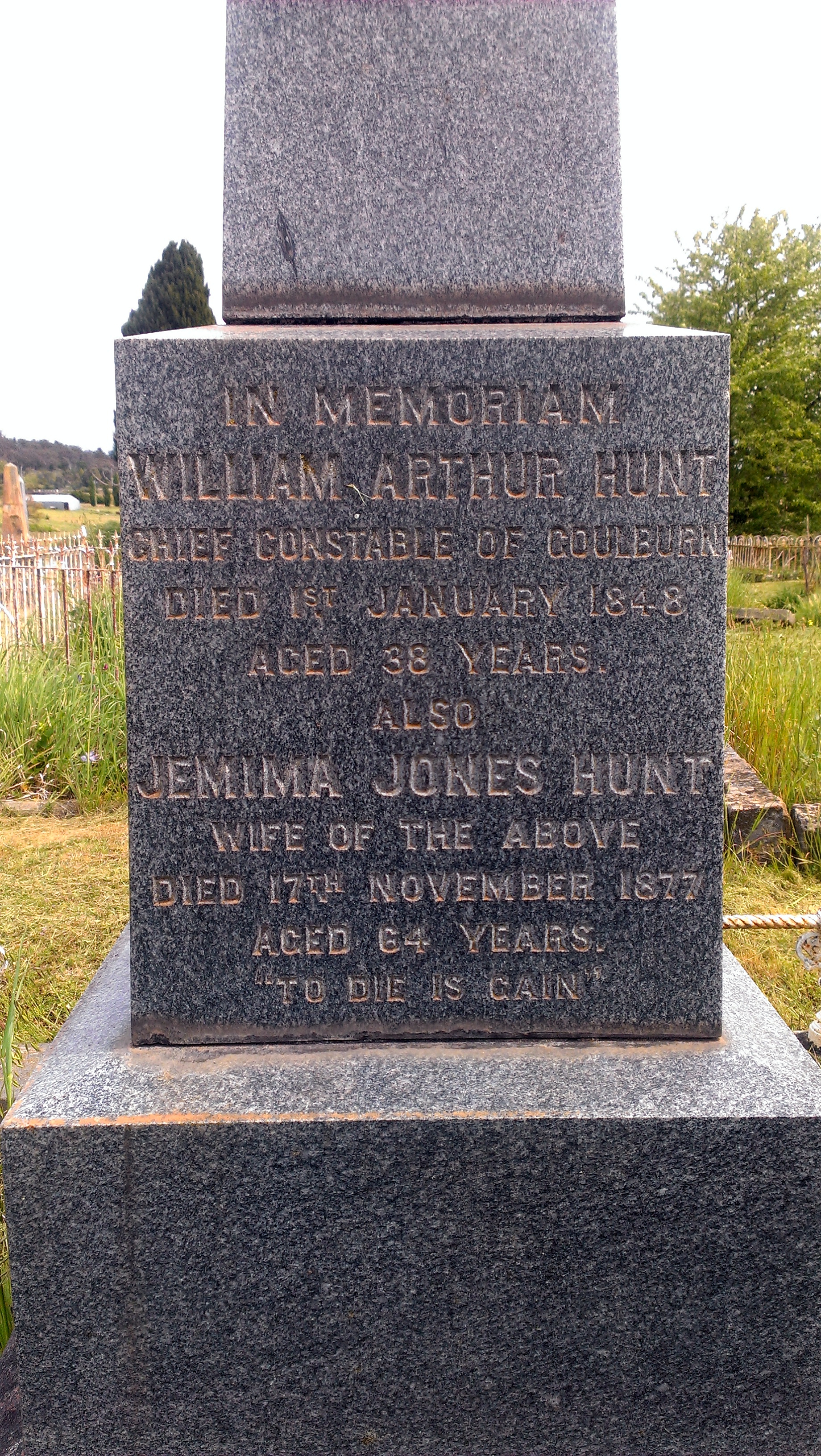 In Sydney, on Sunday, the 2nd instant, Mr. William Hunt, late Chief Constable at Goulburn, leaving a widow and eight children.