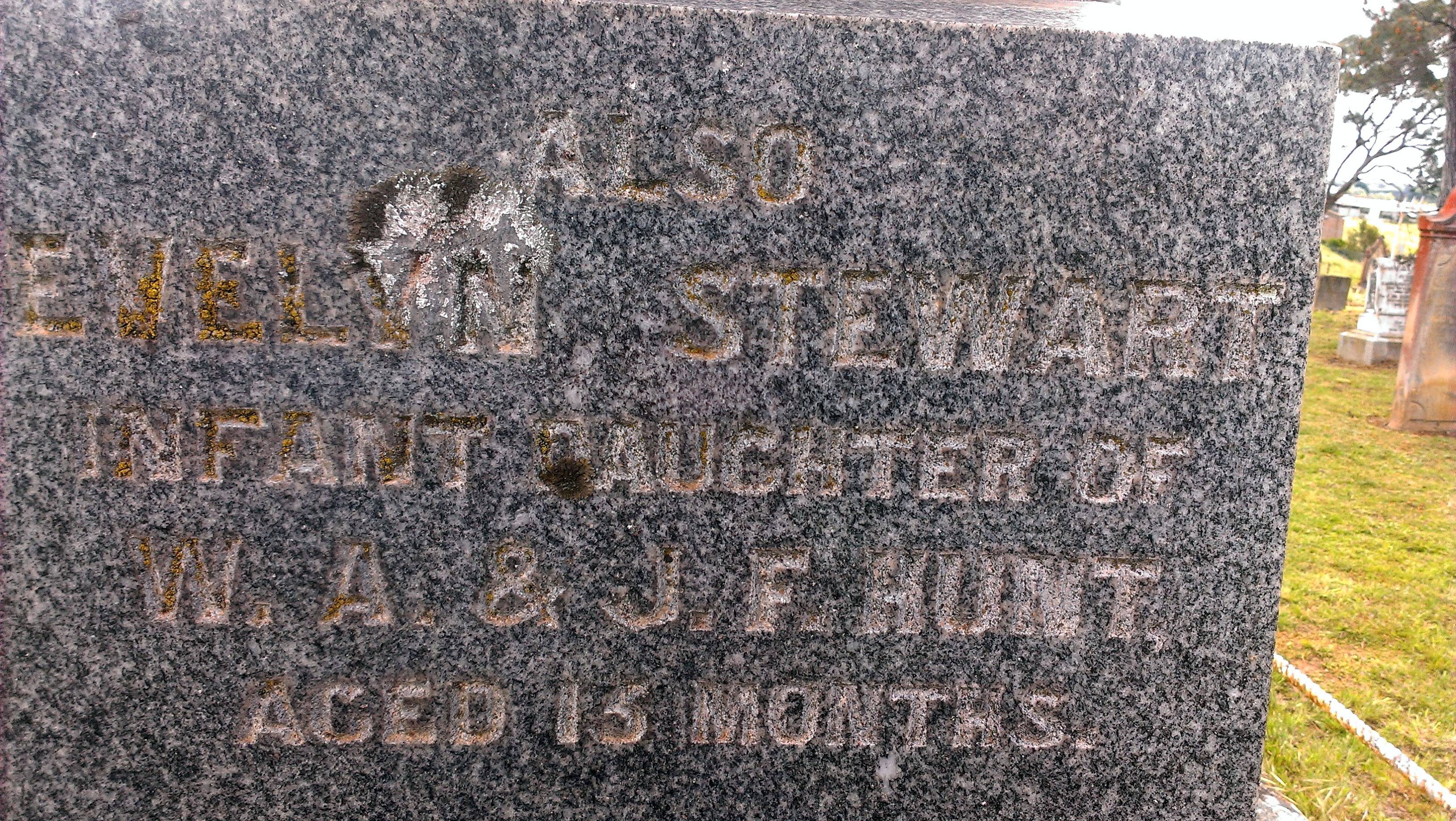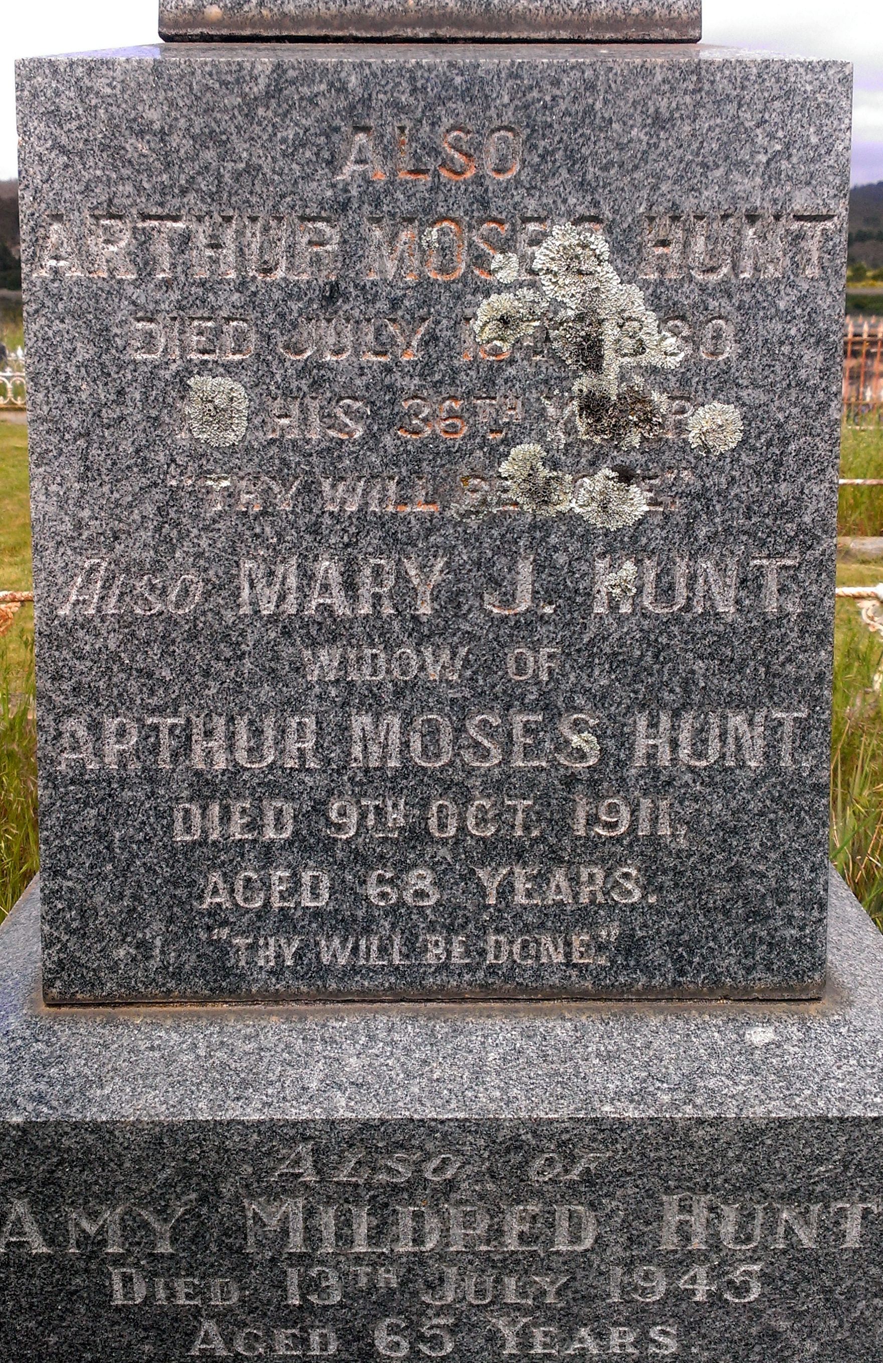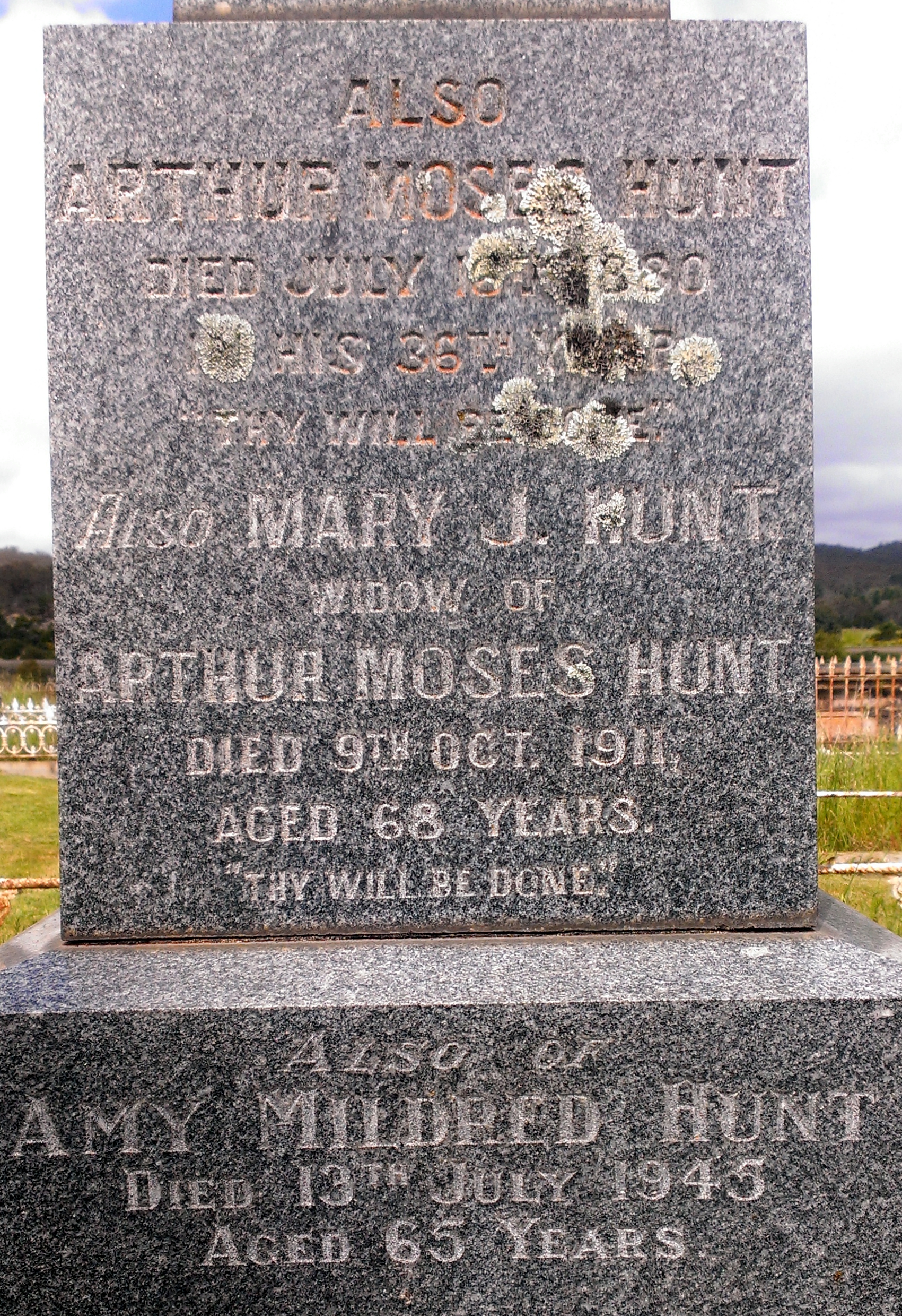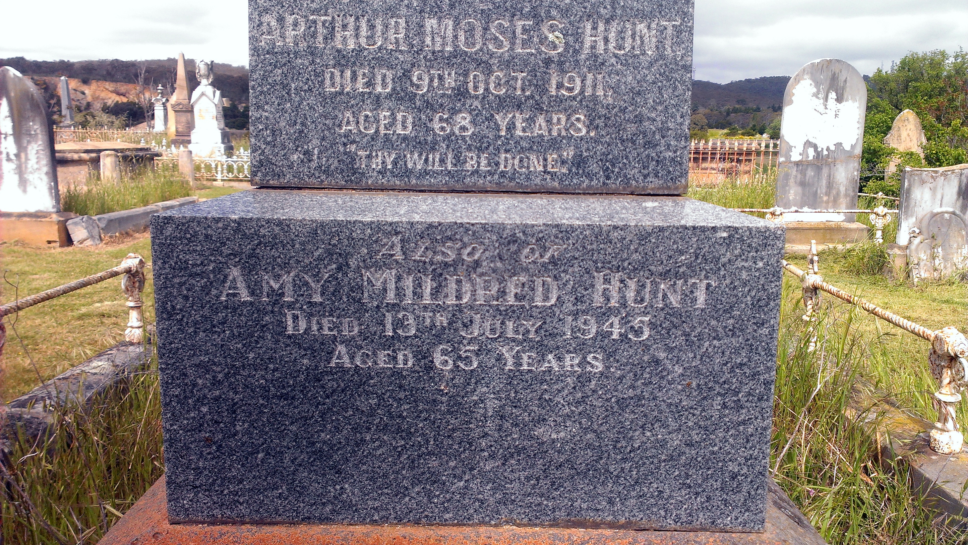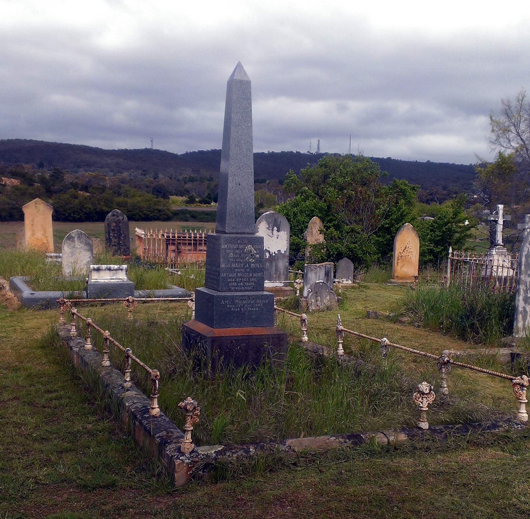 - Olive Jane Hunt (married George Woodall), Jemima Hunt (m. William Richardson), Louise Grace Hunt (m. Uriah Smith), Mary Emily Hunt (m. David John Marsh Broadhead), William Arthur Hunt Jnr. (m. Jane Fuller Stewart), James Evans Hunt (m. Mary Josephine Futton), Arthur Moses Hunt (m. Mary Jane Wilson) and Grace Meatyard Hunt (m. Alexander McClung). See also members.pcug.org.au/~croe/dat1.htm#3