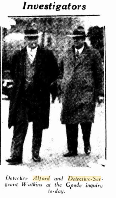 20 June 1932. Detective Alford and Detective Sergeant Watkins at the Goode inquiry today.