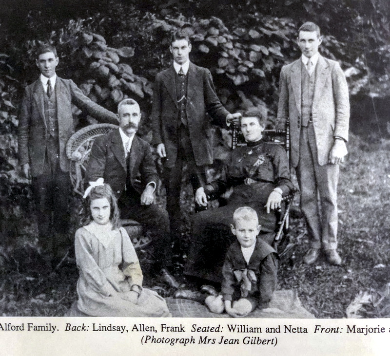 Alford FamilY. Back: Lindsay, Allen, Frank Seated: William and Netta Front: Marjorie a ( Photograph Mrs Jean Gilbert )